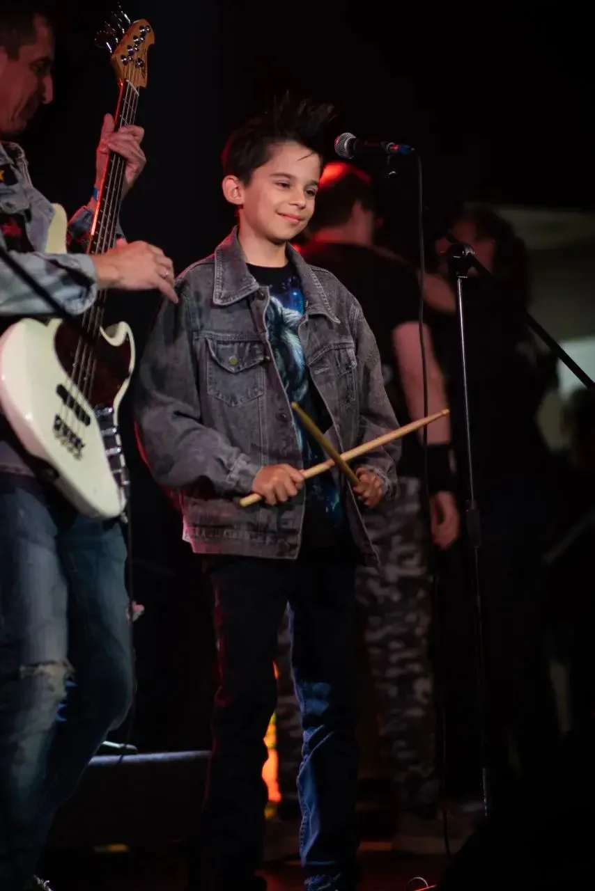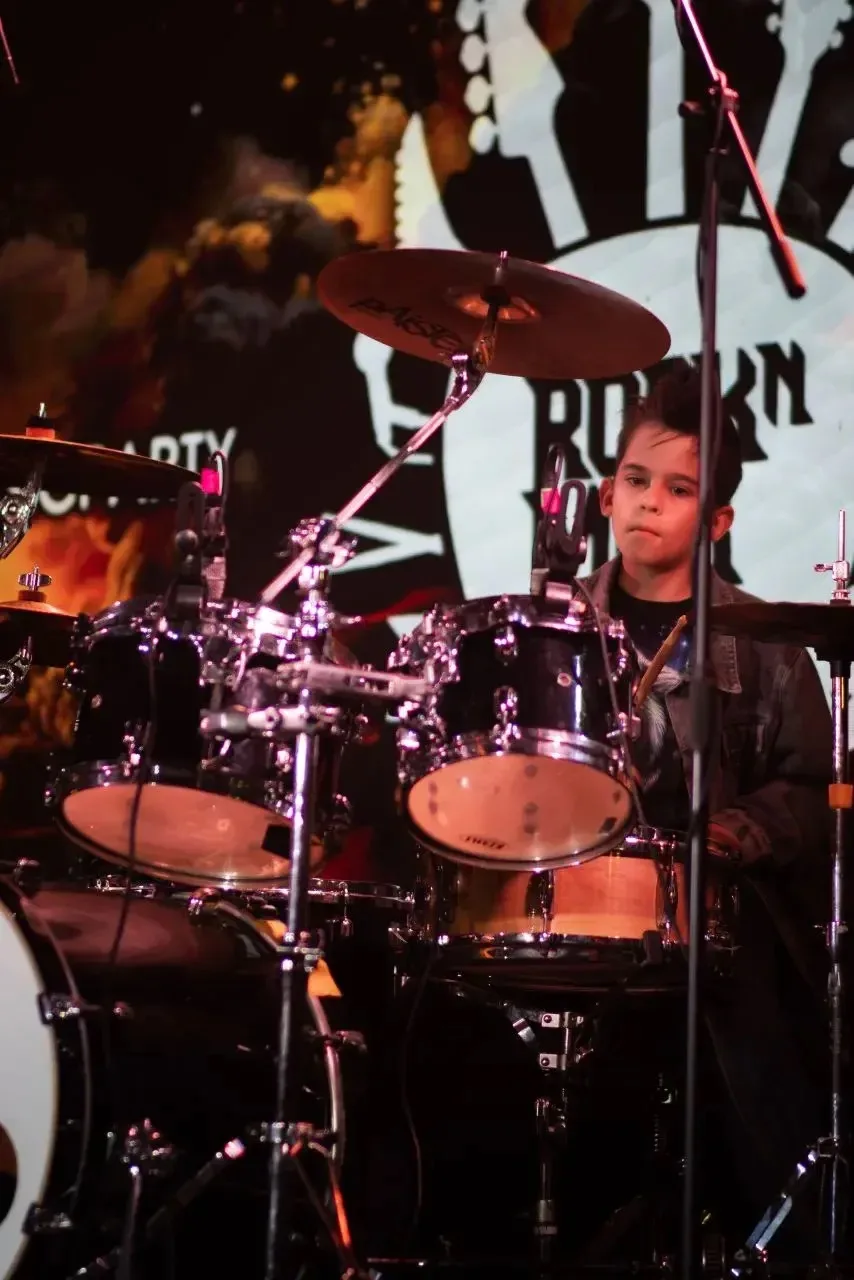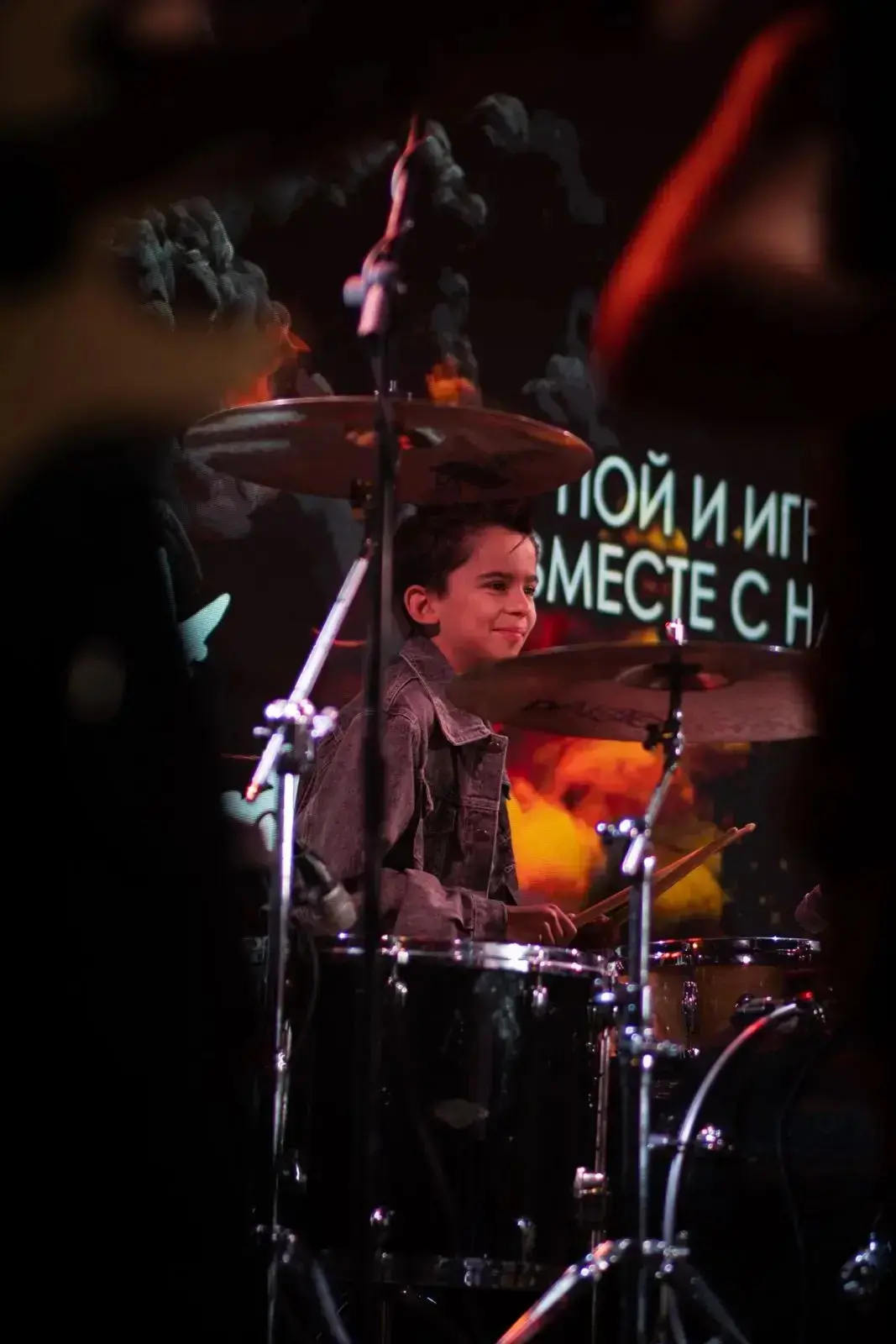 💫 И вот настал час икс. Вспотевшие от волнения ладони, свет софитов и взгляд полный решимости — и первые же такты знаменитой композиции показали: он здесь не как ученик, а как полноправный участник команды. Четкий ритм, мощные акценты и уверенная игра — со стороны нельзя было и предположить, что это его первый выход на такую сцену. Он справился блестяще и выступил как настоящий профессионал!