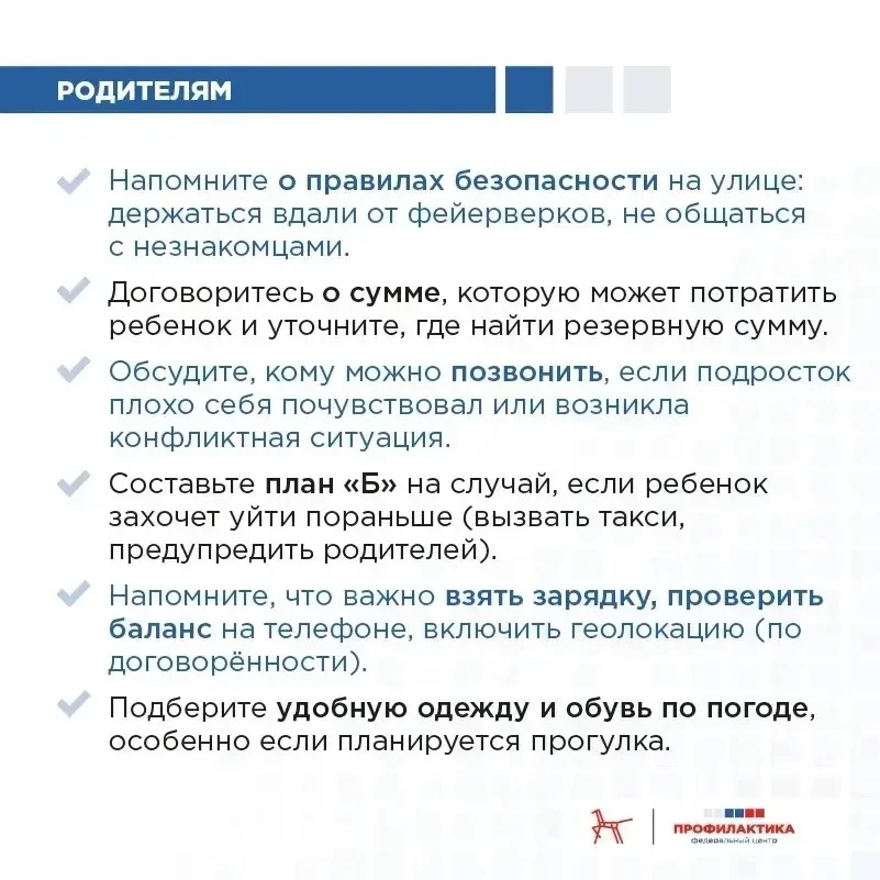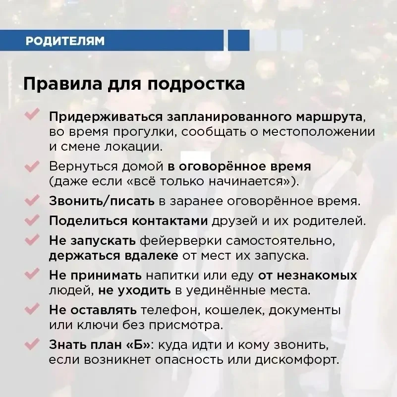 Новый год — волшебное время, но для родителей подростков оно нередко становится источником тревог. Чтобы праздник прошёл безопасно и оставил только приятные воспоминания, важно заранее обсудить ключевые моменты. В карточках — правила для обеих сторон и список тем для конструктивного диалога.