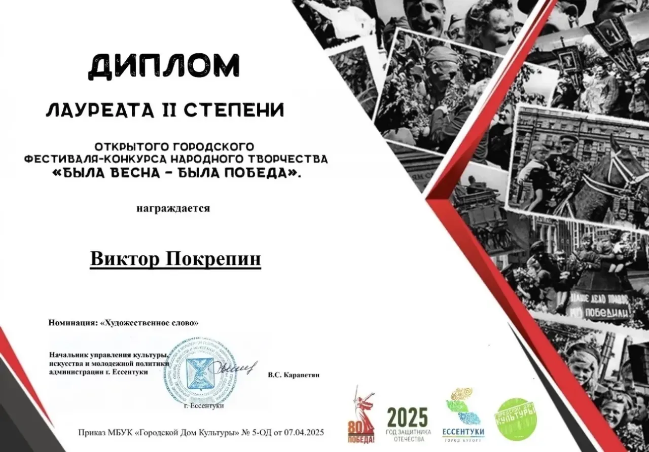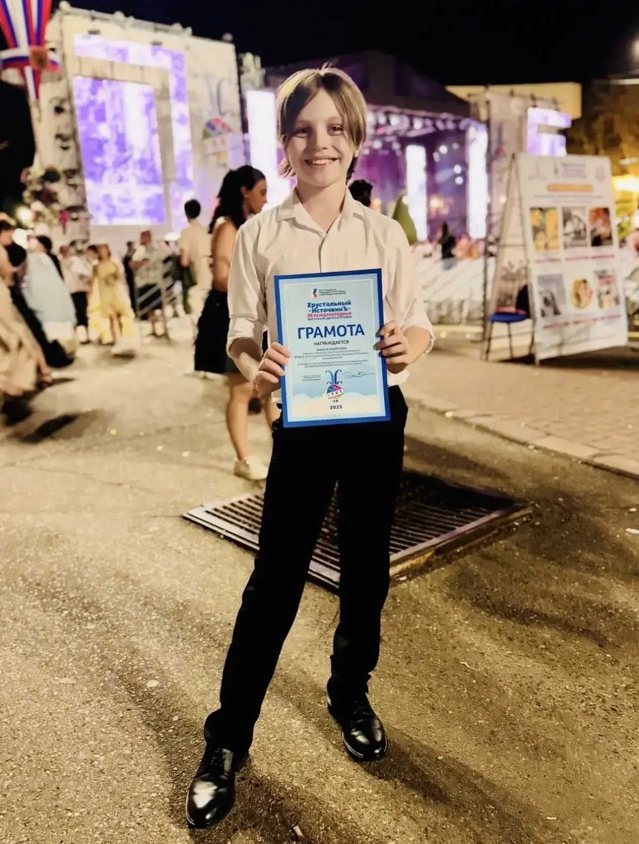 💫Продолжаем подводить итоги уходящего года и делиться достижениями наших учеников! 🎄🌟Виктор Покрепин, ученик 5 А класса, стал участником III международного фестиваля детского кино «Хрустальный источник» и лауреатом 2 Открытого городского фестиваля-конкурса народного творчества «Была весна - Была Победа»!