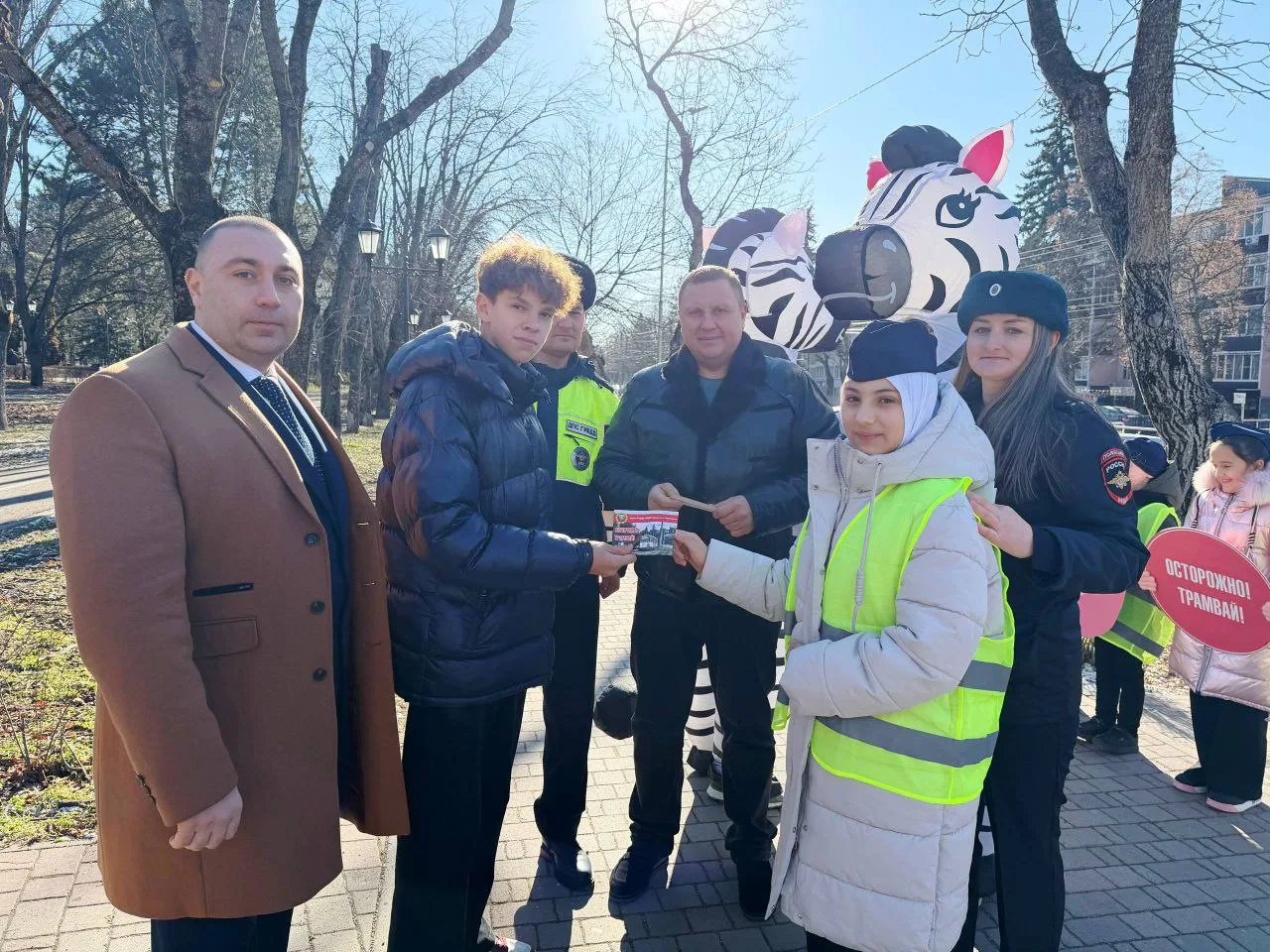 🚔👍В г.Пятигорске сотрудники Отдела Госавтоинспекции по г. Пятигорску и Отдельного батальона ДПС г. Пятигорск совместно с отрядом юных инспекторов движения школы N16, депутатом Думы г. Пятигорска Артуром Мартиросян, заместителем Всероссийского общественного движения "Отцы России " Виталием Найденовым провели профилактическую акцию «Внимание, трамвай!».