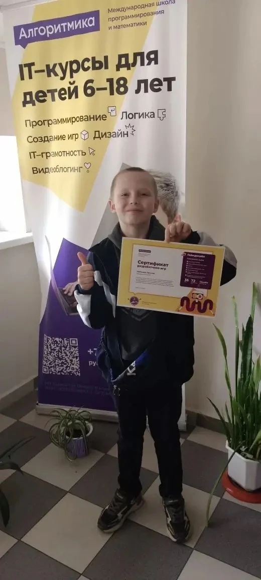 🎄🌟 Мятников Ярослав, ученик 5А класса, в свои 10 лет понял, что хочет связать свою жизнь с IT 💻. Решил для начала попробовать себя в геймдизайне. В 2024-2025г. прошёл весь курс, получил международный сертификат и продолжил обучение по направлению «Создание сайтов».