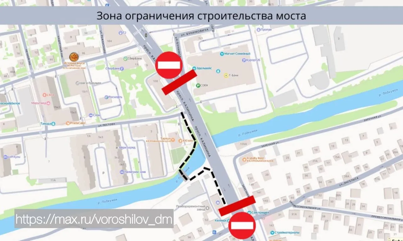12 января с 0:00 подрядная организация приступит к работам по перекрытию движения транспортных средств в зоне проведения реконструкции моста на пр. Калинина.
