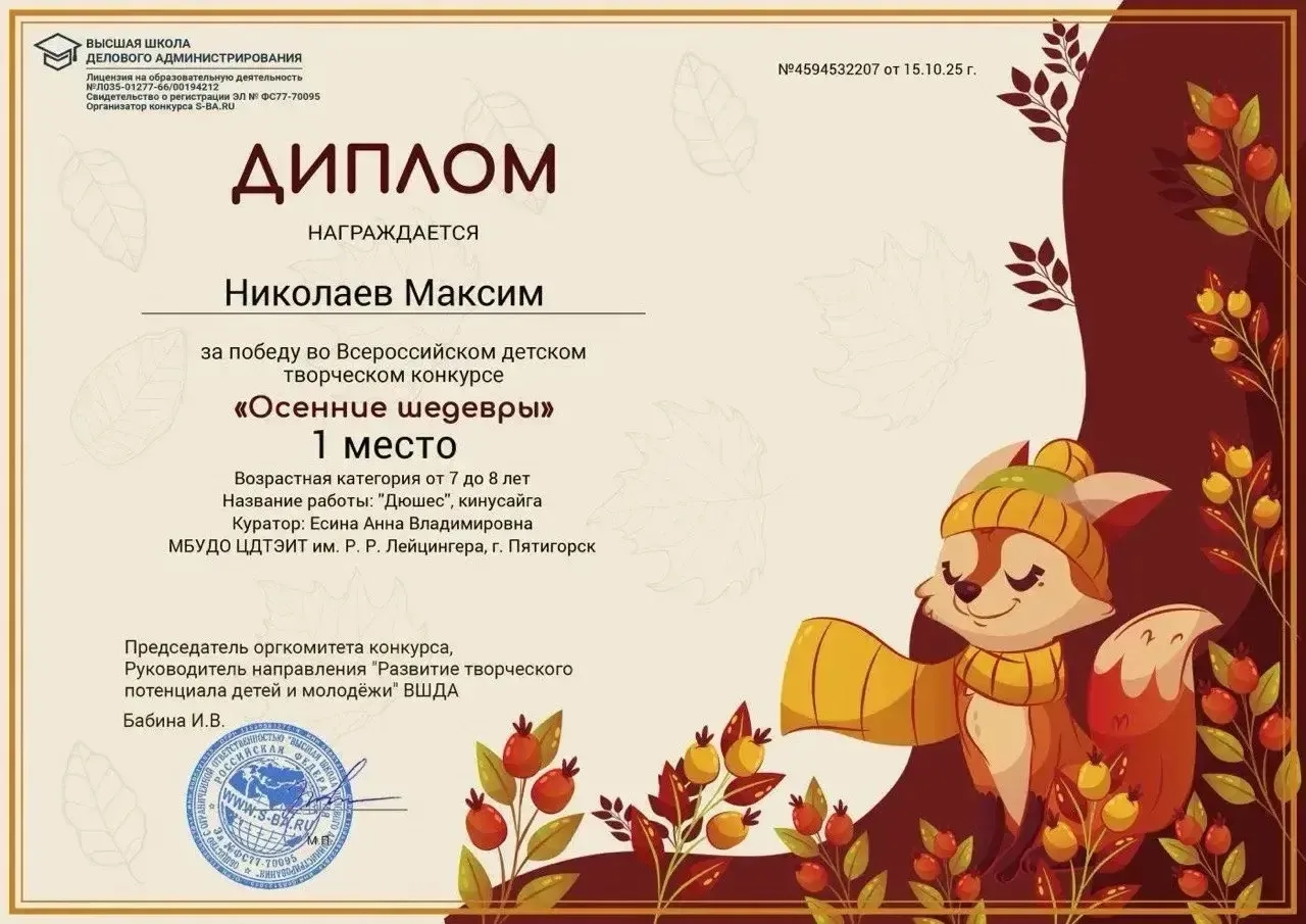 они могут часами рисовать или мастерить удивительные поделки из различных материалов и в разных техниках. Вдохновение и упорство помогают им превращать идеи в реальность. И их талант замечают: уже не первый раз их работы занимают призовые места на серьёзных творческих конкурсах. Творчество стало для них и любимым увлечением, и дорогой к успеху. Желаем Максиму и Михаилу дальнейших успехов 👏👏👏!