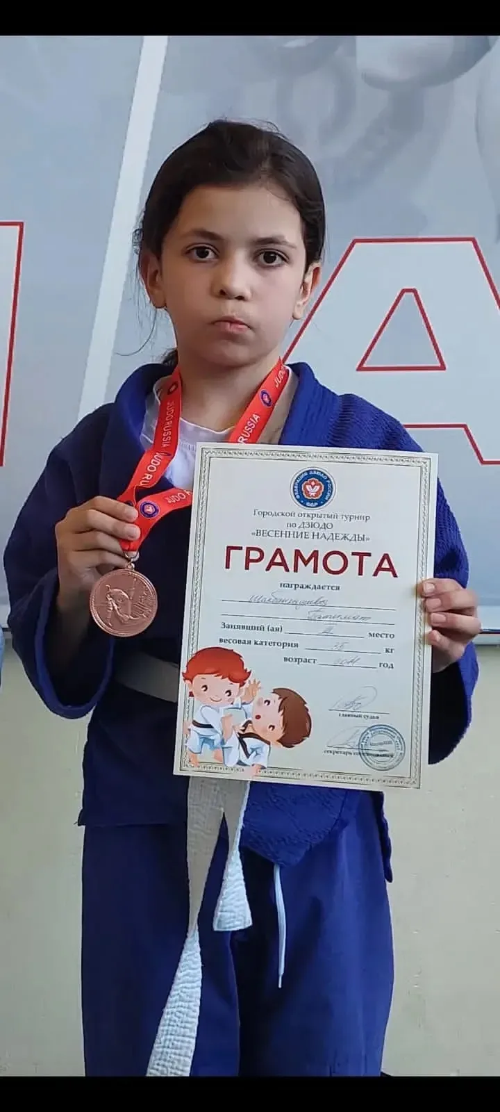 🎄🌟 Щахбанкадиева Патимат, ученица 5б класса, в уходящем году заняла I место на соревнованиях по рукопашному бою и боевому самбо!