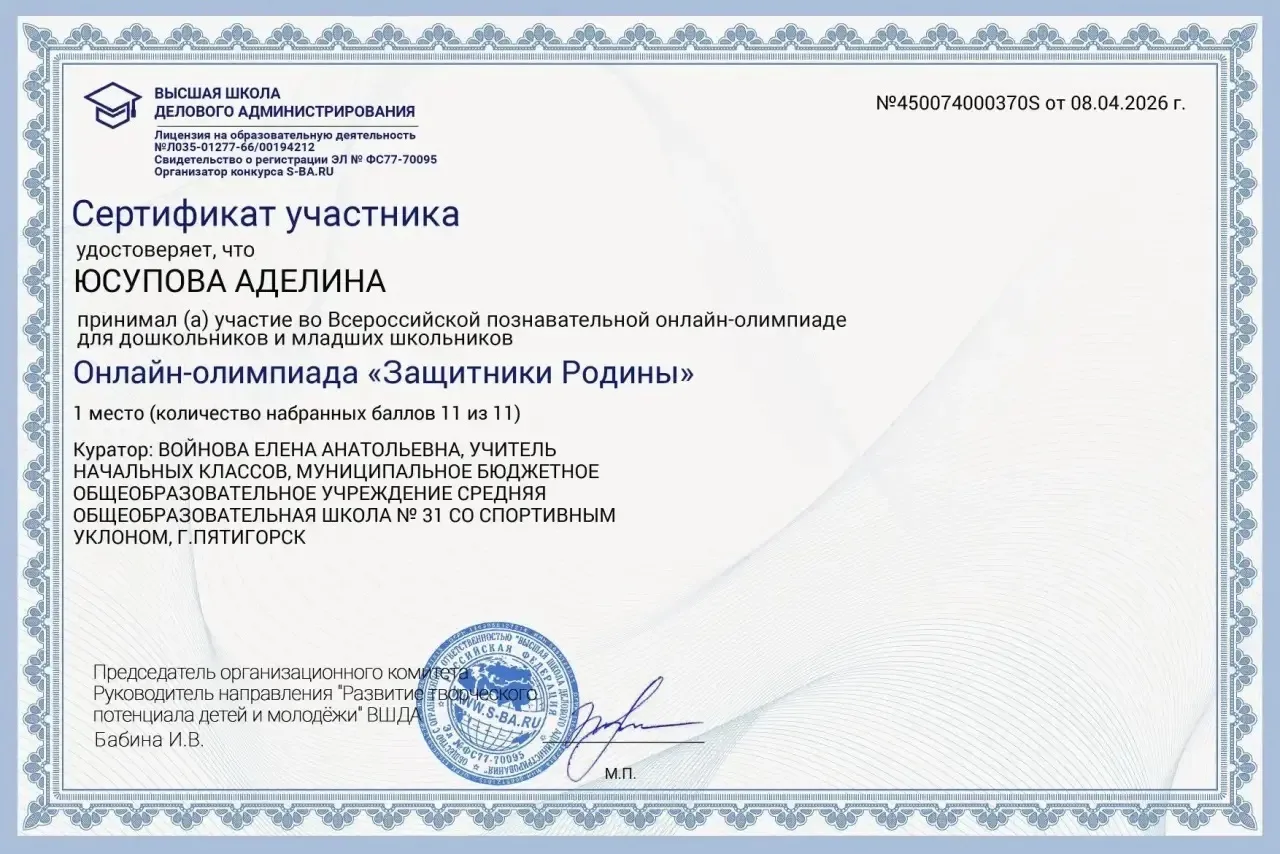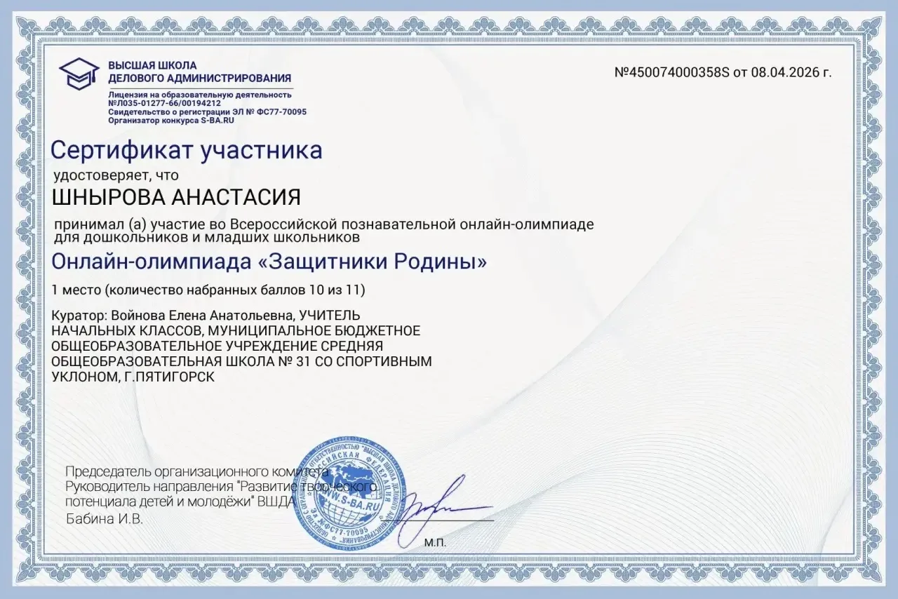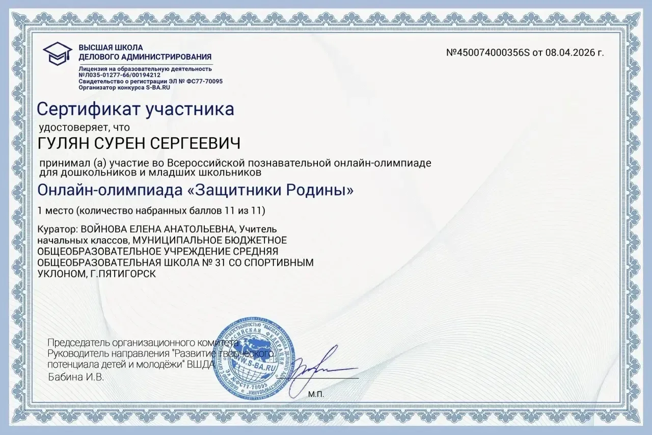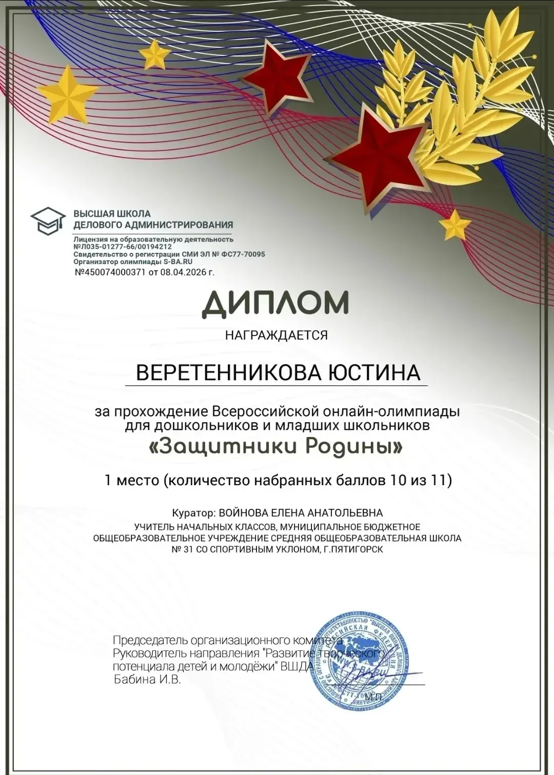Обучающиеся 2Б класса, в рамках военно-патриотической недели,приняли участие в онлайн Олимпиаде Защитники Отечества.