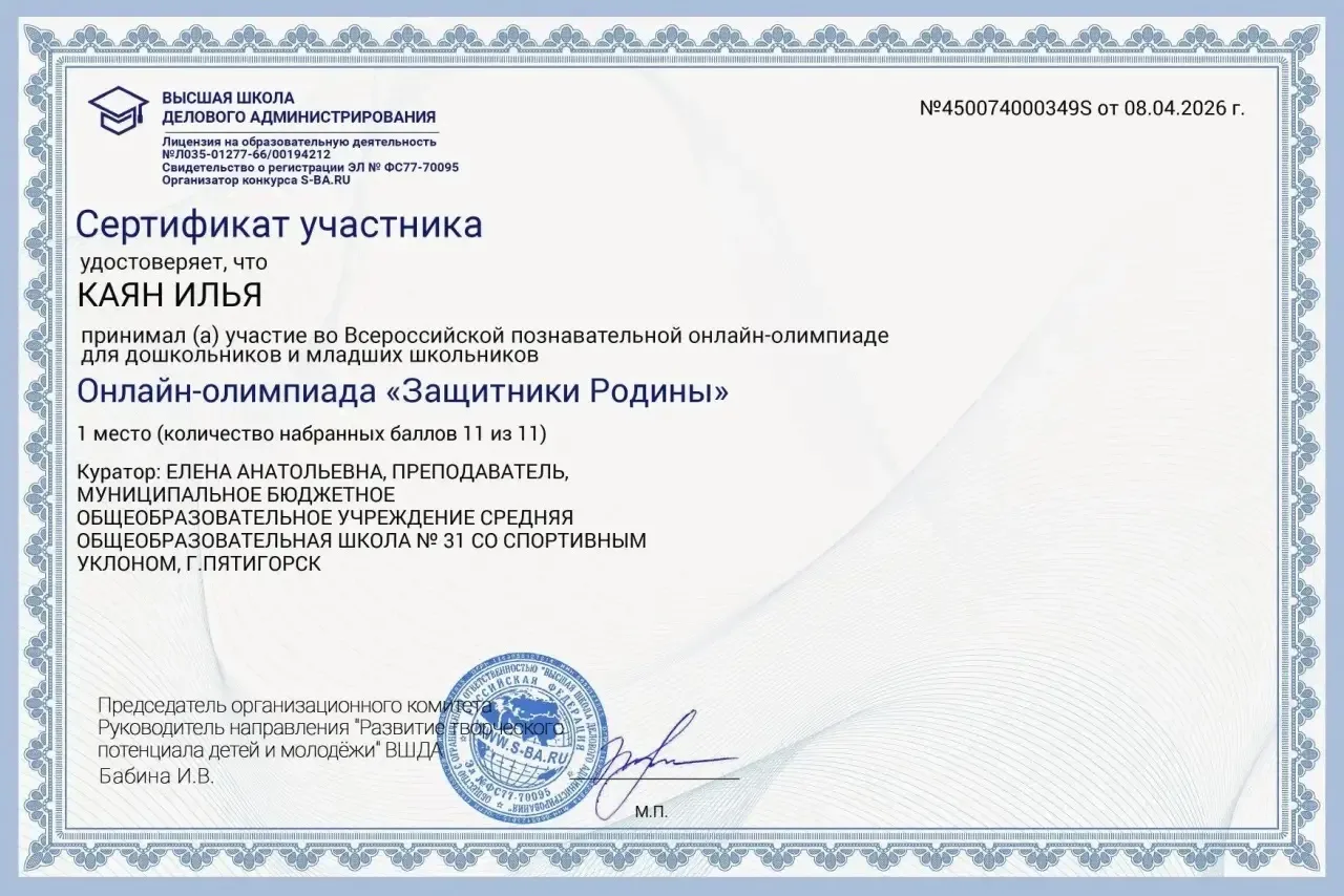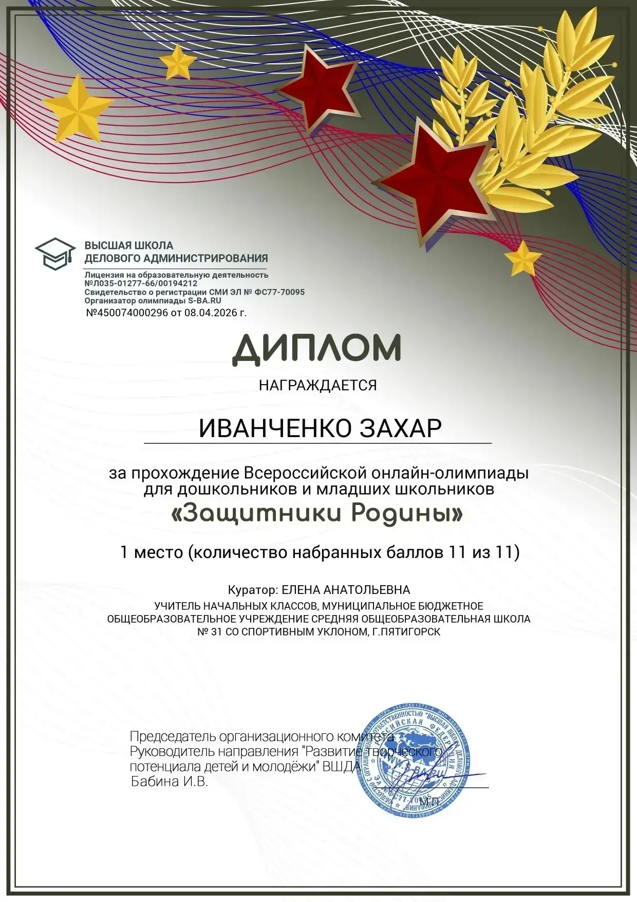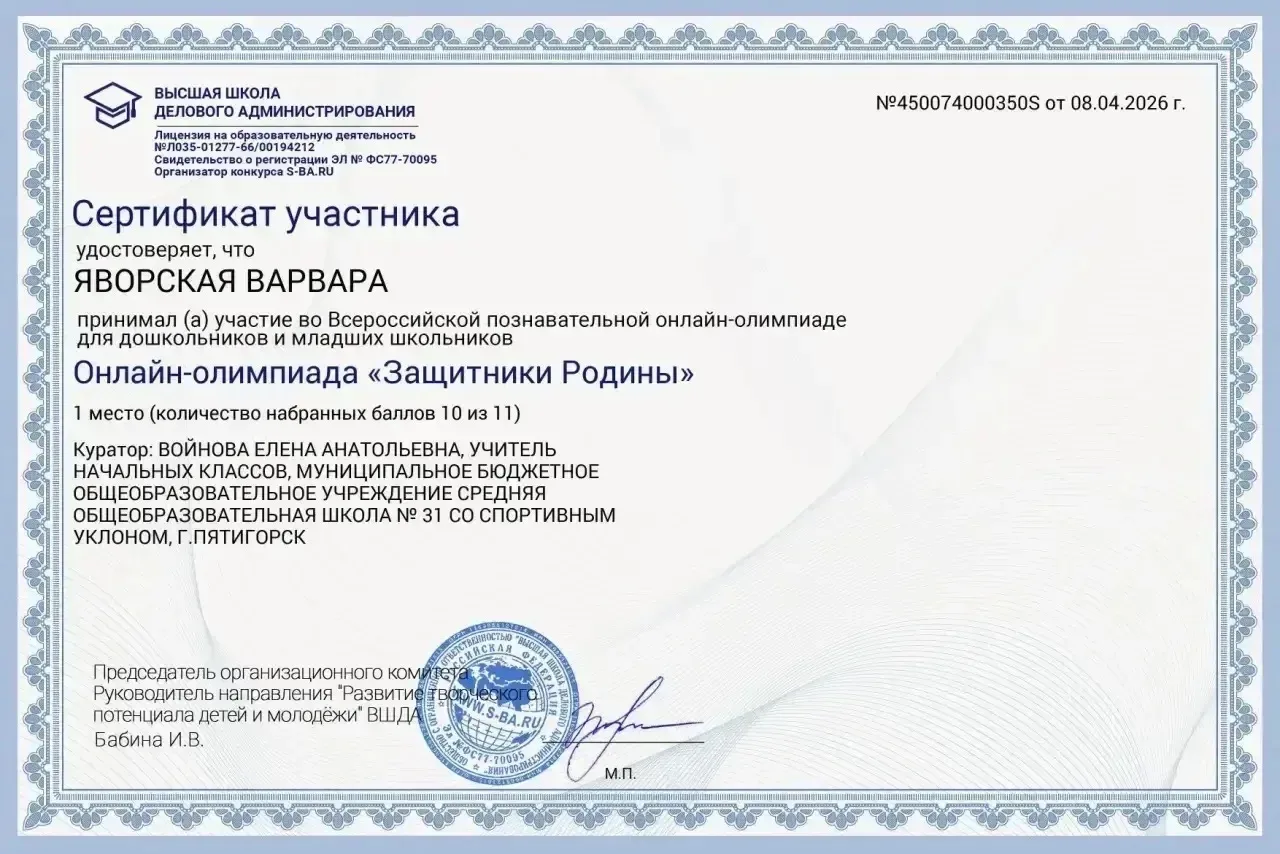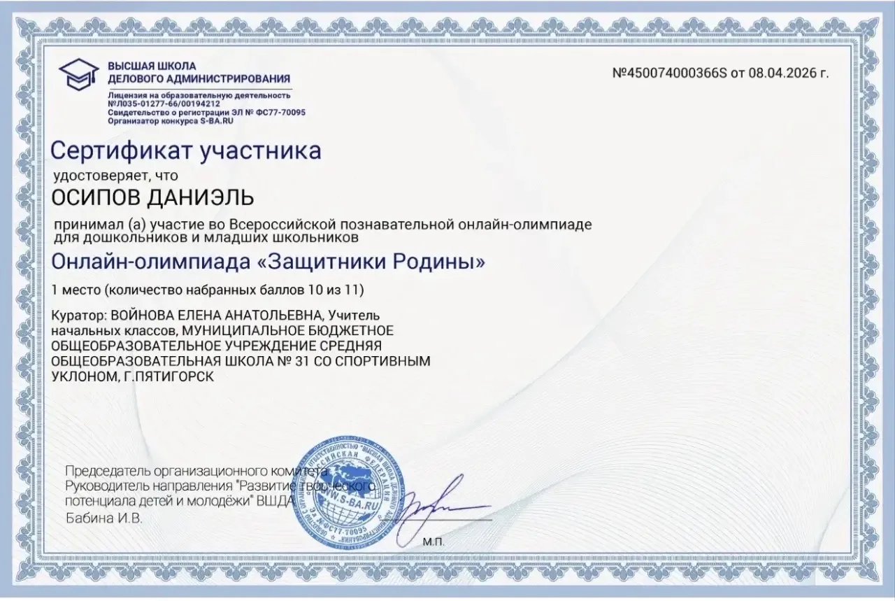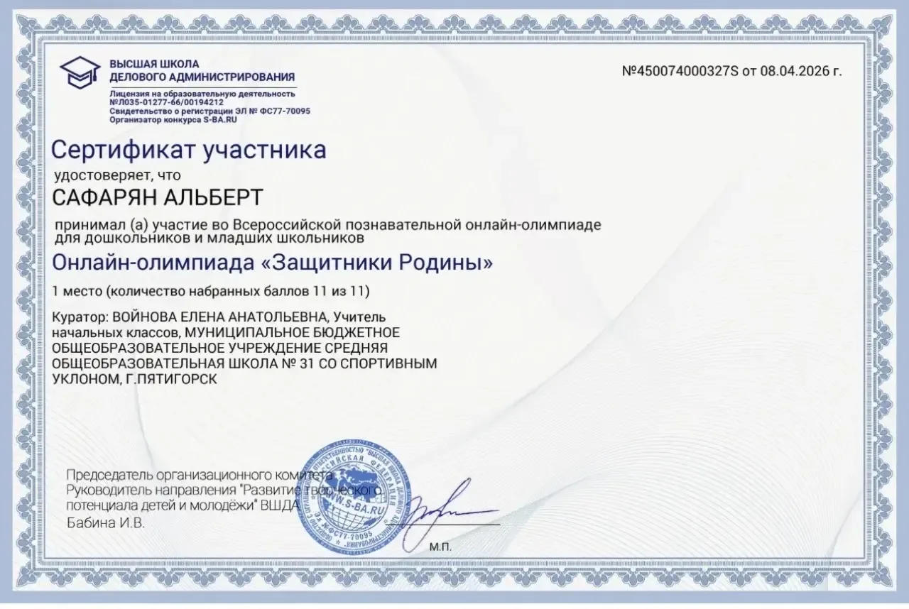 Обучающиеся 2Б класса, в рамках военно-патриотической недели,приняли участие в онлайн Олимпиаде Защитники Отечества.