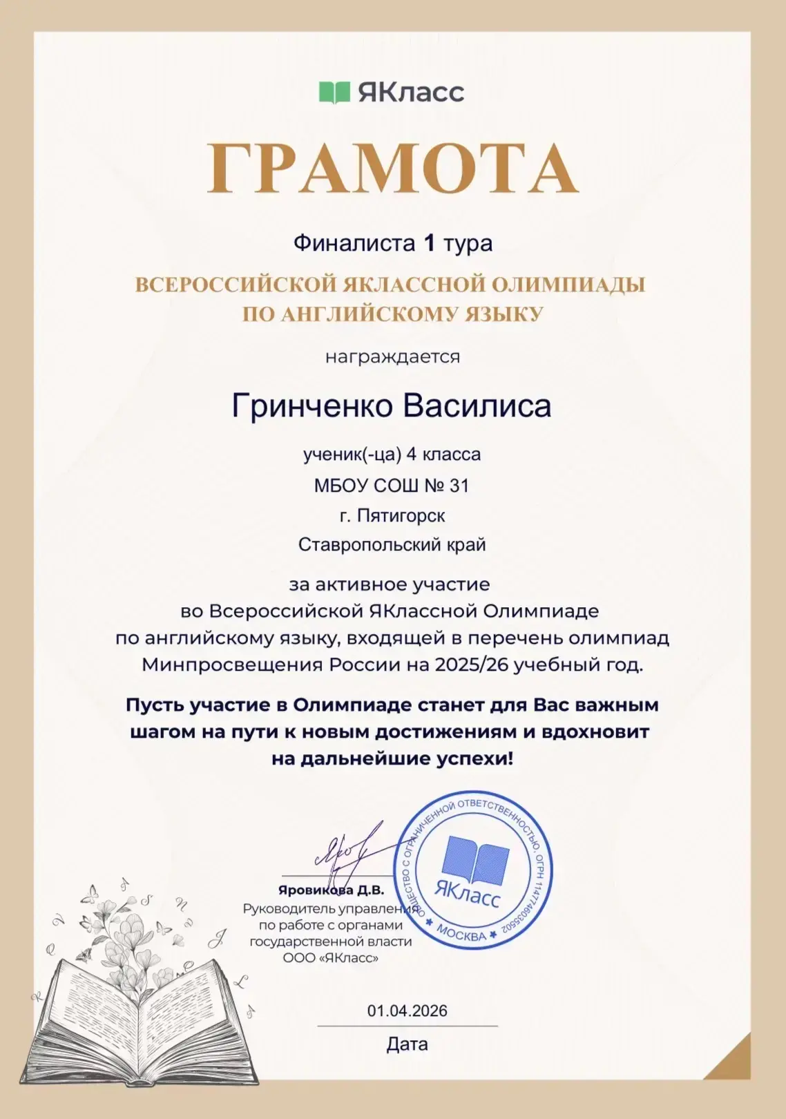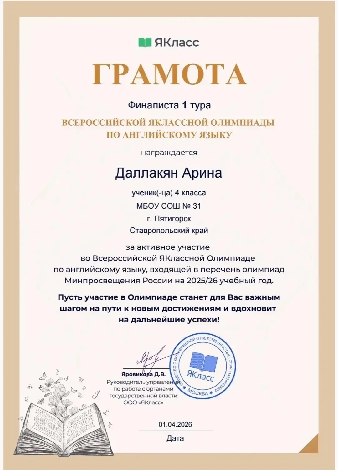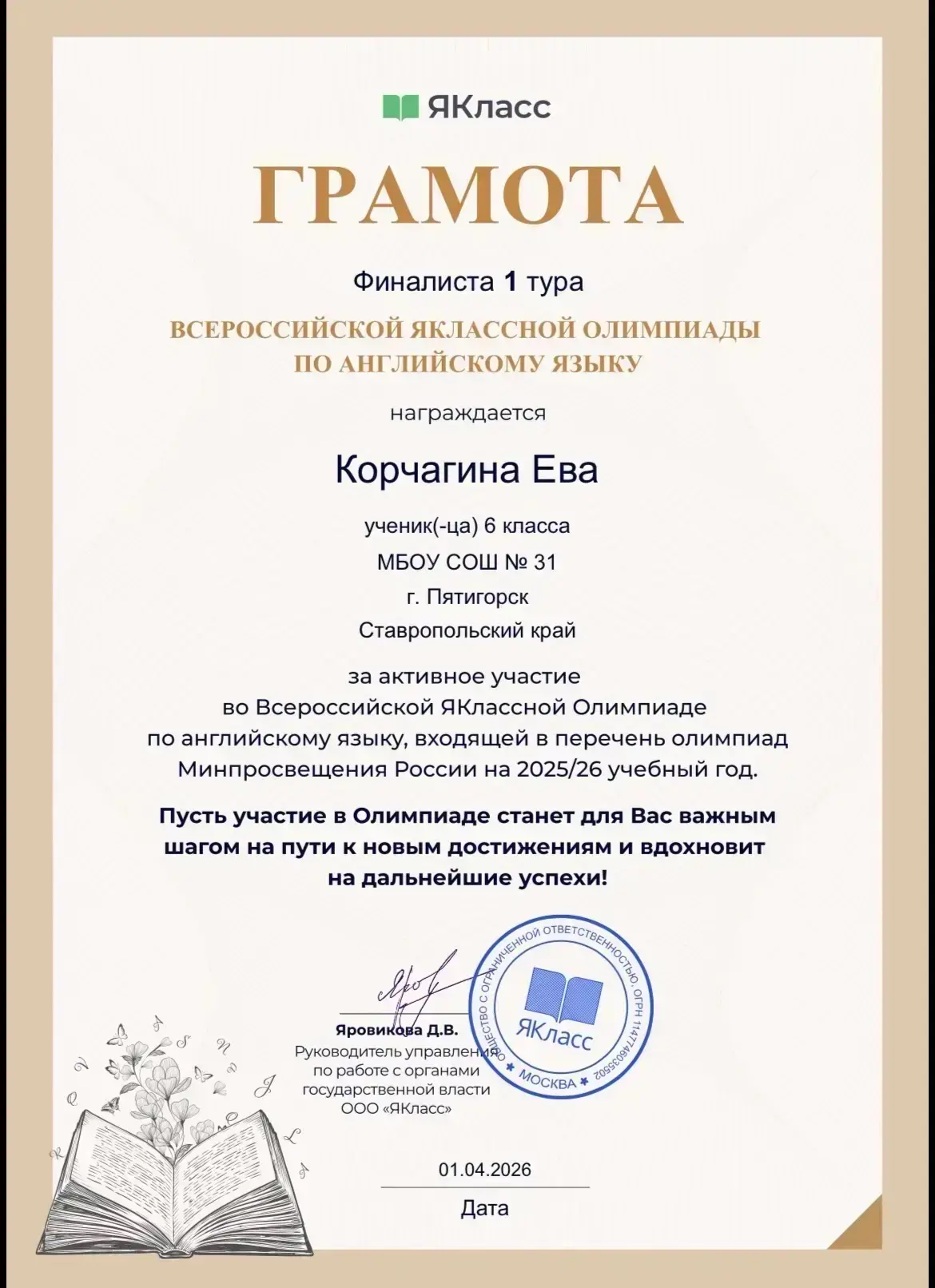 Мария Гончарова завершила обучение по курсу математики в региональном центре Сириус-26 в г.Ставрополь.