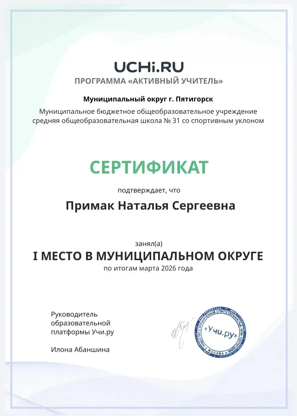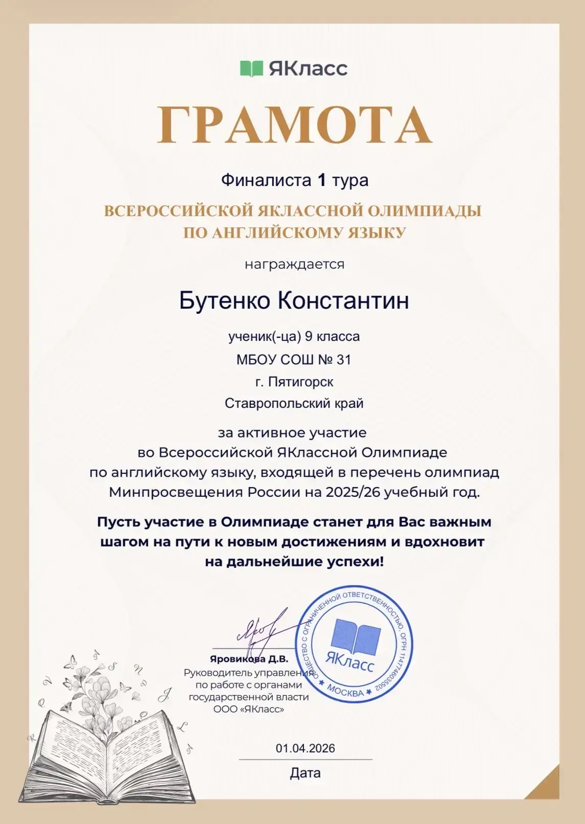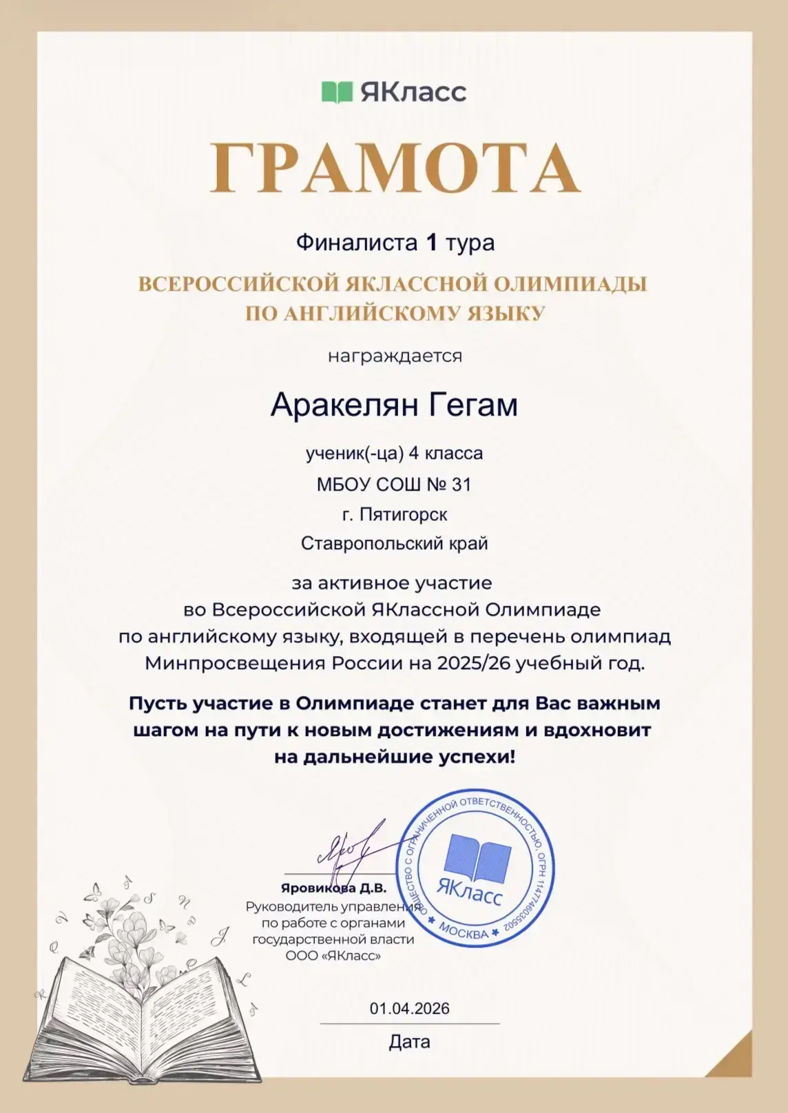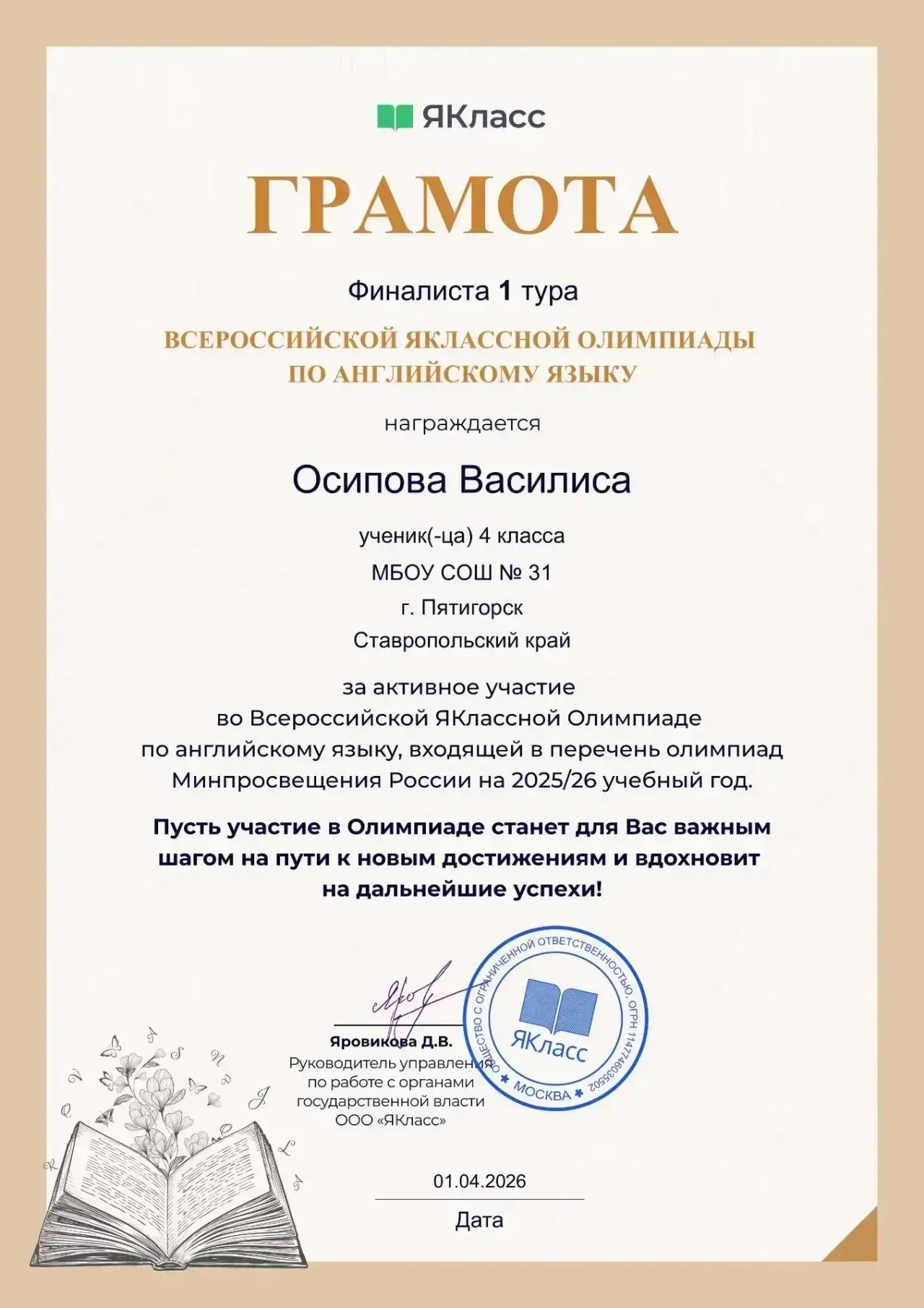 Мария Гончарова завершила обучение по курсу математики в региональном центре Сириус-26 в г.Ставрополь.