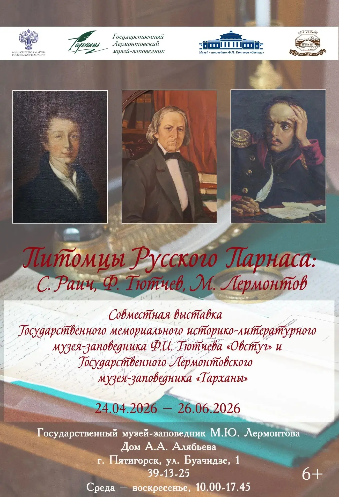 Два литературных музея – Государственный Лермонтовский музей «Тарханы» и Государственный мемориальный историко-литературный музей Ф.И. Тютчева «Овстуг» – привезут в Пятигорск уникальные экспонаты, чтобы рассказать о видной фигуре первой половины XIX века – поэте, журналисте и переводчике, преподавателе словесного отделения Московского университета Семене Раиче.