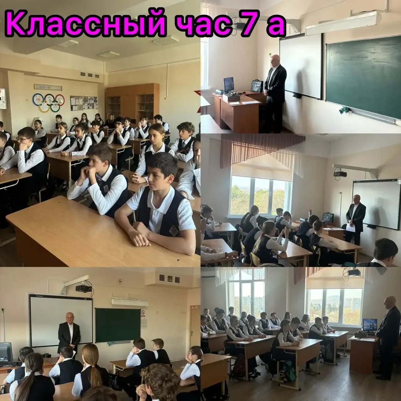 Сегодня в 7 а классе прошла встреча с полковником ФСБ в отставке Дорожко Николаем Ивановичем. Встреча была посвящена специальным военным операциям в Чеченской республике, СВО. Были затронуты темы патриотизма, терроризма, единства народов России. Говорили о спорте, который не имеет границ, и о выборе жизненного пути.