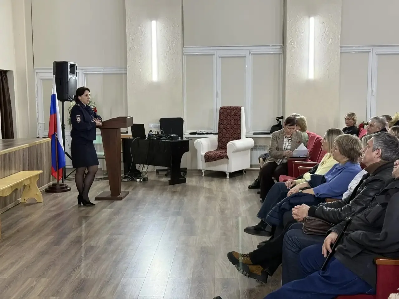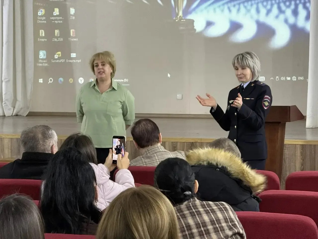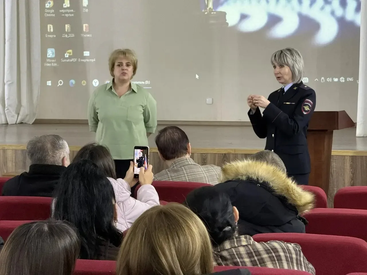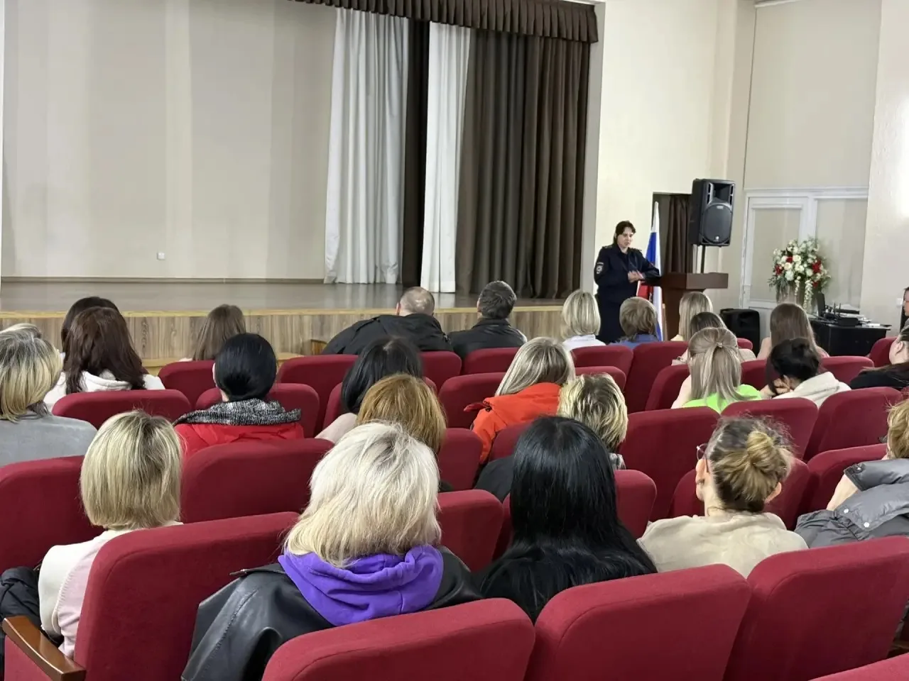 Ставропольскому краю майором полиции Краснояруженской Еленой Александровной и сотрудником Центра Временного содержания несовершеннолетних совершивших правонарушения и преступления, в том числе террористического характера провели родительский лекторий в МБОУ СОШ Nº7 на тему: