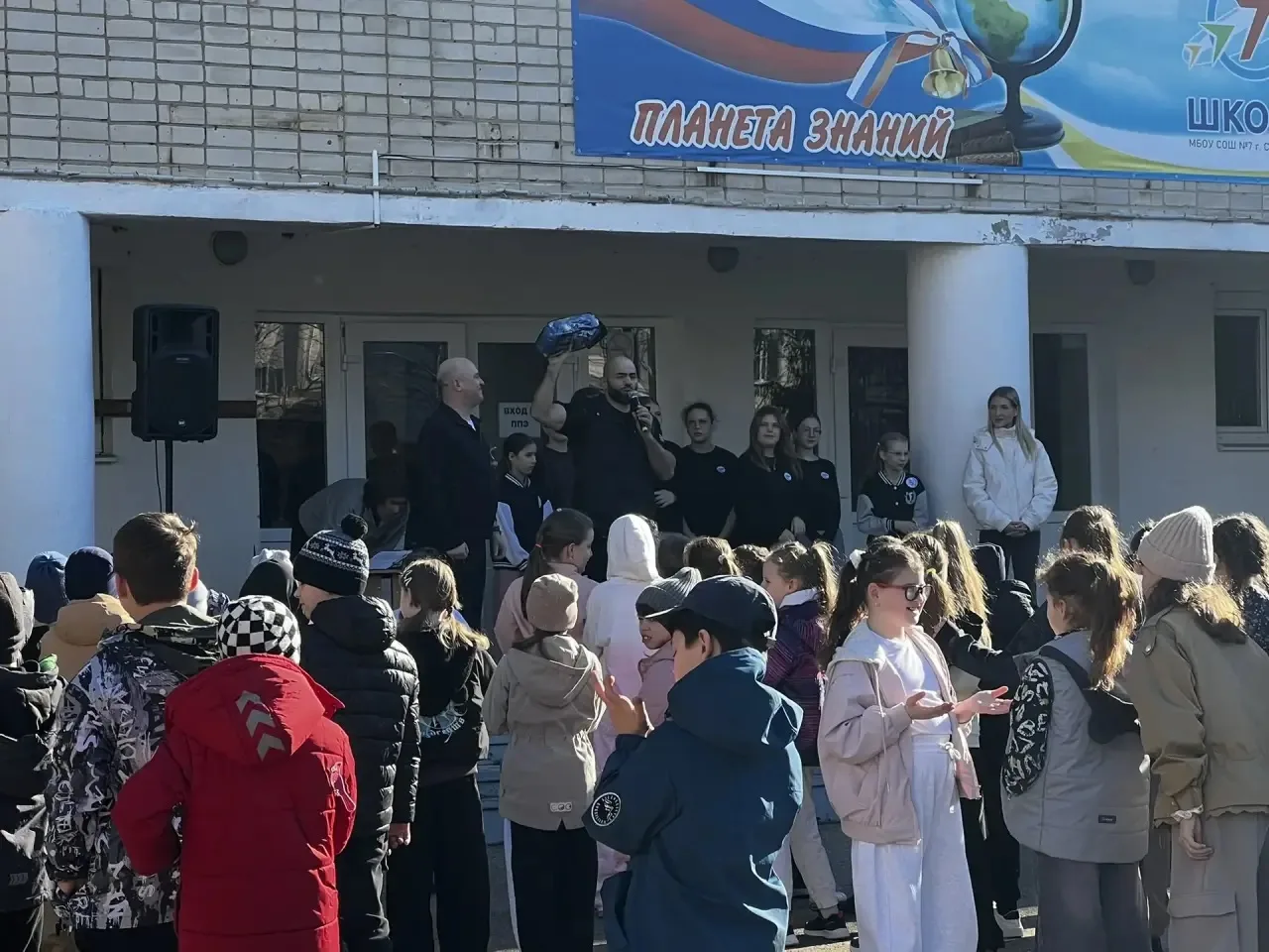 В честь Всемирного дня здоровья в нашей школе прошла необычная утренняя зарядка. Вместе с учениками упражнения выполнял настоящий чемпион! Рахим Русланович Чахкиев российский боксёр-профессионал, Олимпийский чемпион. Серебряный призёр чемпионата мира. Чемпион Европы среди юниоров.