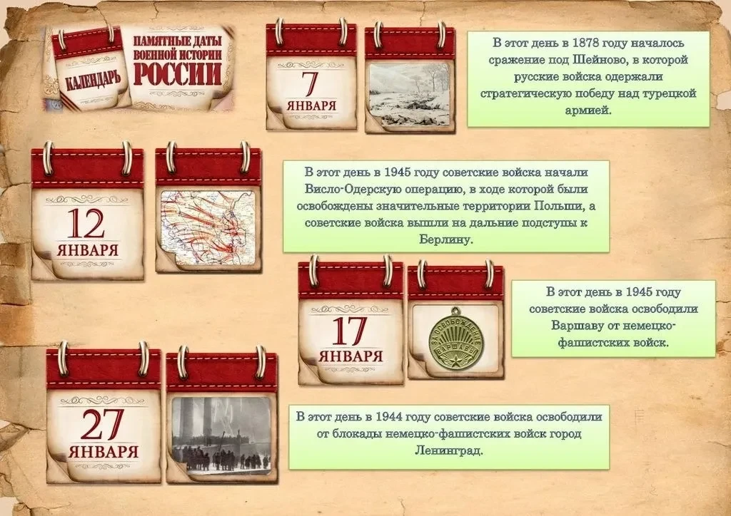 ПАМЯТНЫЕ ДАТЫ ВОЕННОЙ ИСТОРИИ. ЯНВАРЬ.