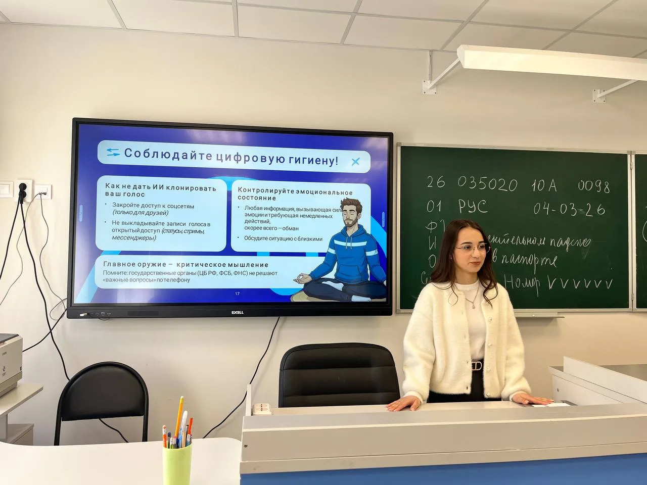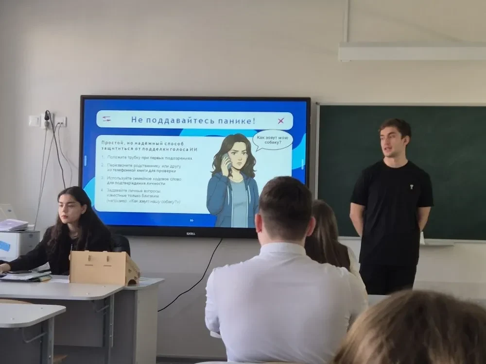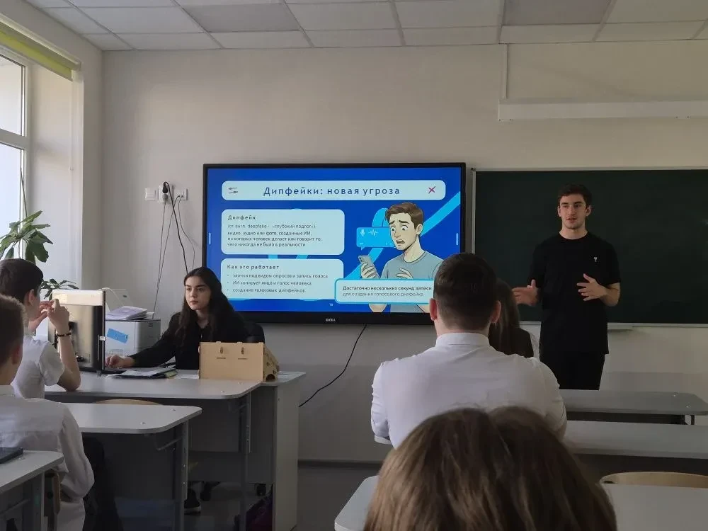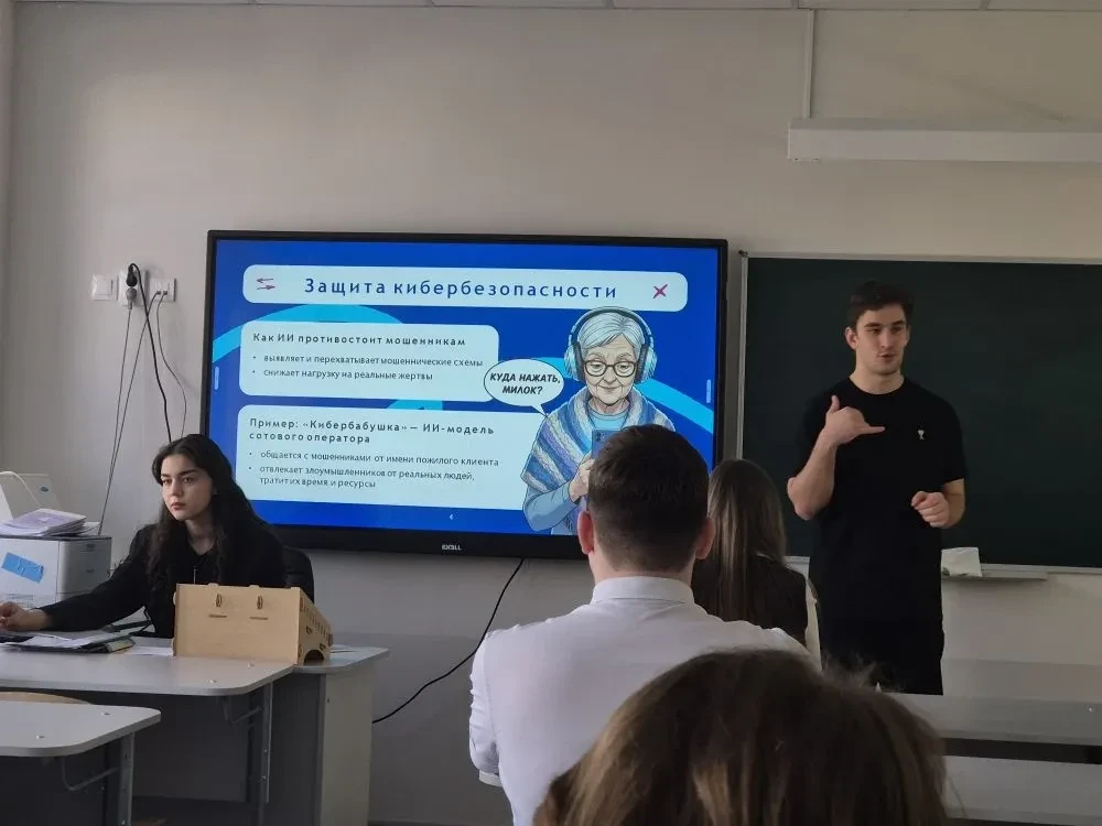 Студенты СтГАУ кафедры «Экономическая безопасность», в рамка Международной Олимпиады по финансовой безопасности, провели лекцию о «Темной стороне ИИ» для учащихся 10 класса.