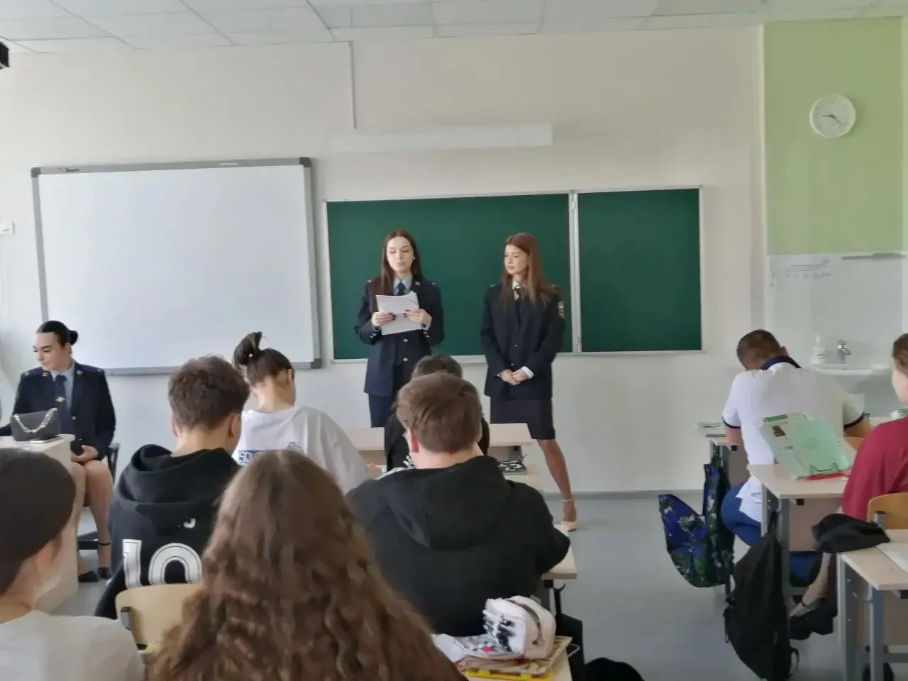 8 апреля лейтенант полиции ЦВСНП ГУ МВД России по СК Горлова Лариса Викторовна провела в 8«Д» и параллели 9-х классов профилактическую беседу на темы: «Ознакомление с Кодексом об административном праве и Уголовным кодексом», «Ответственность несовершеннолетних за участие в террористической и экстремистской деятельности», «Основания для помещения в ЦВСНП».