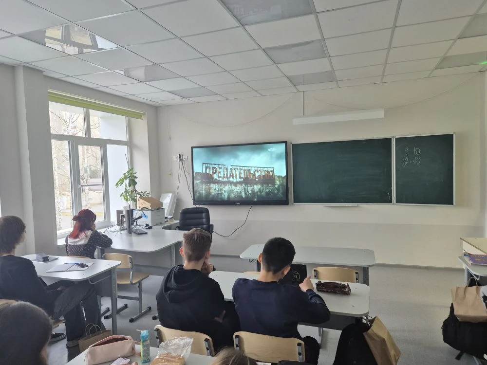 24 февраля в рамках месячника оборонно-массовой и спортивной работы ученики 9-х и 11-х классов просмотрели и обсудили документальный фильм "Предательство ".