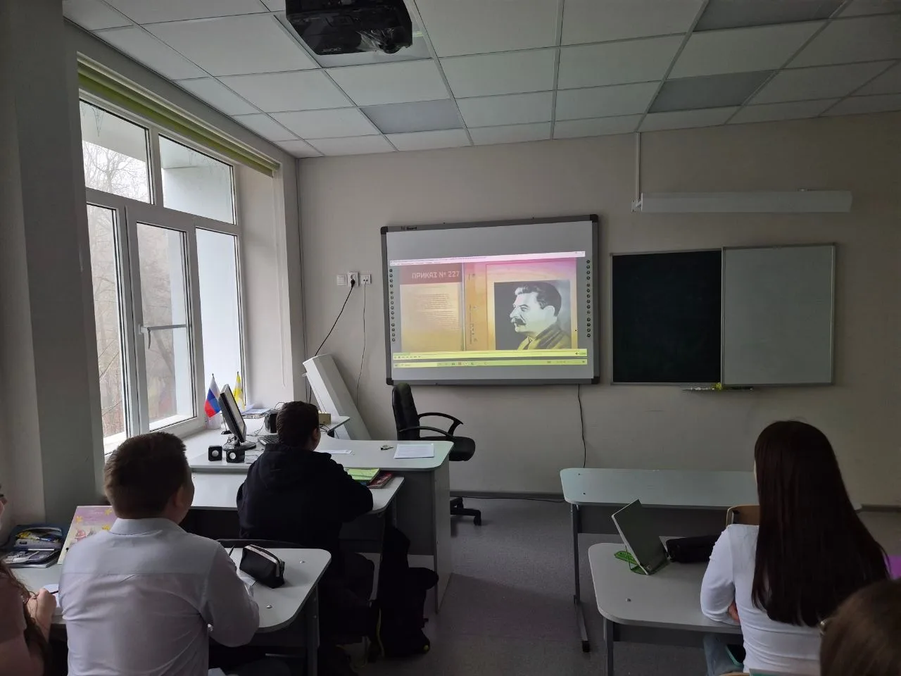 а также жестокий урок войны. Победа в этой тяжелейшей битве стала первым шагом к падению фашистского режима и освобождения от оккупантов СССР и Европы. Советнику директора по воспитанию Цветкова Э. З. организовала кинолекторий «Сталинград» . Ребята просмотрели документальный фильм и обсудили события тех времен.