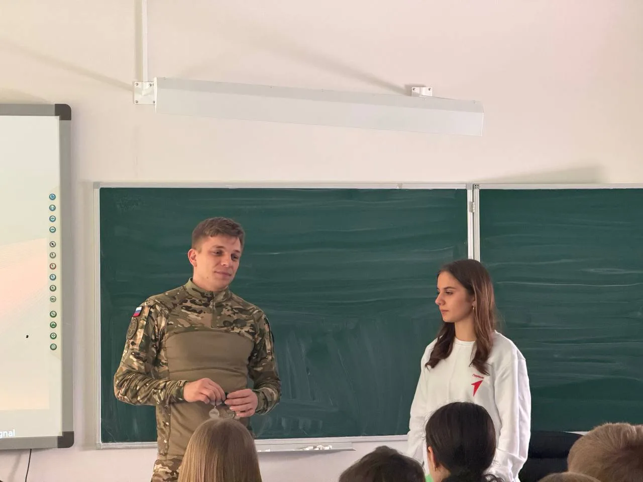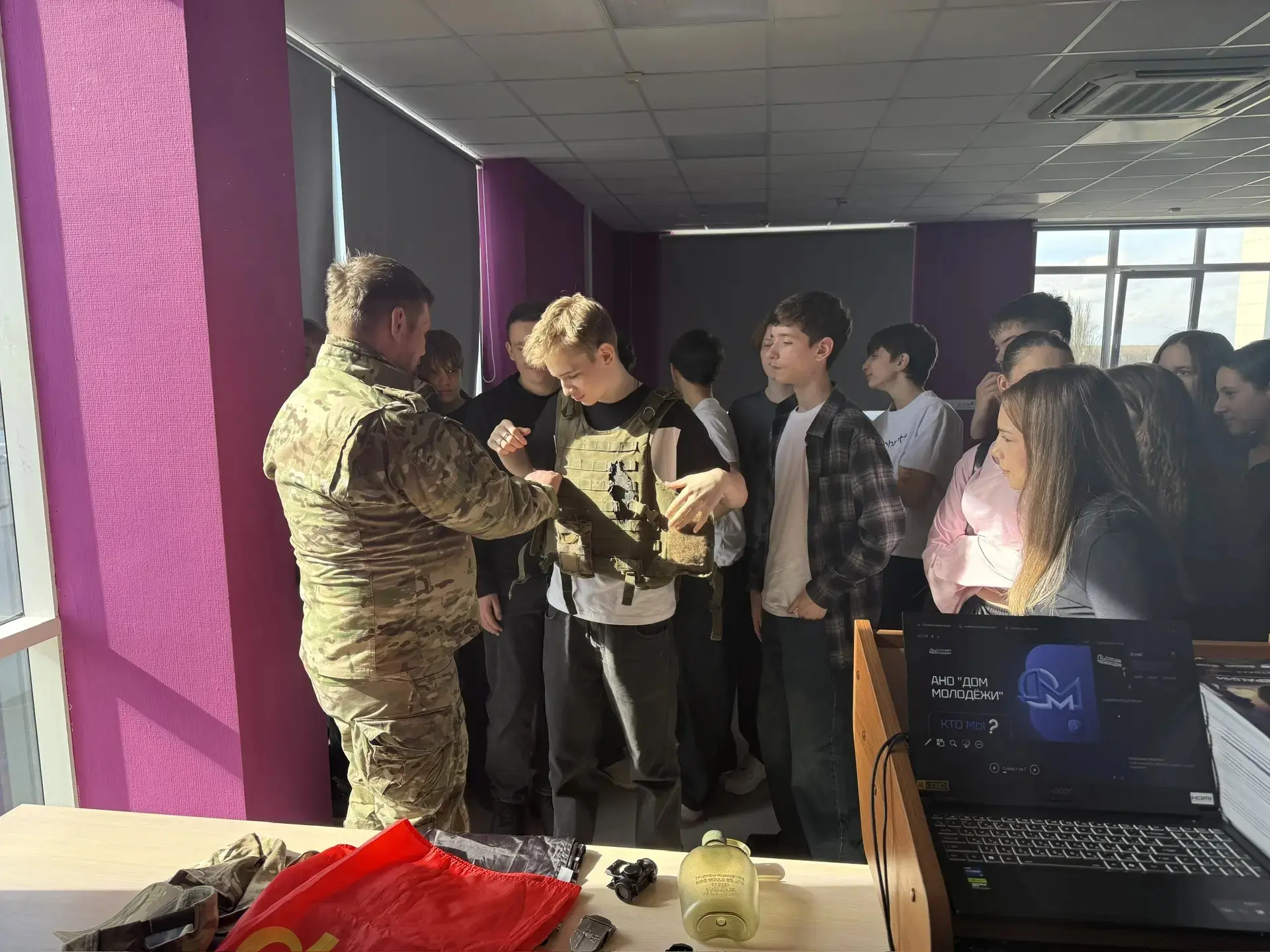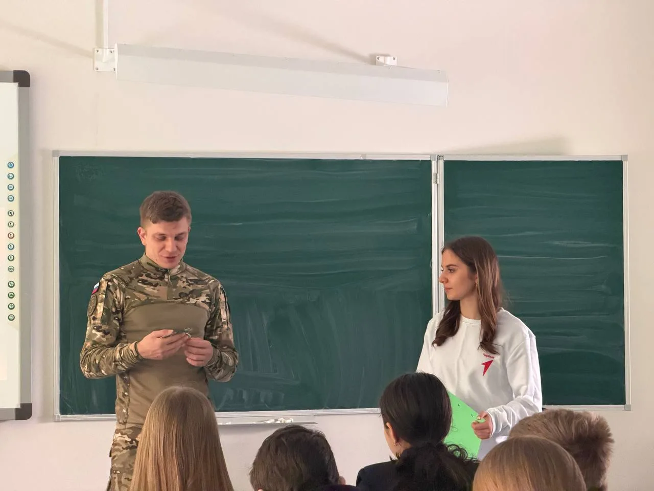 20 февраля учащиеся 8а класса посетили патриотический центр АНО "Дом молодежи", где встретились с Паньковым Павлом Николаевичем, участником СВО, 114 ОМСБр. Павел Николаевич пришёл на встречу не с пустыми руками, познакомил детей с военными принадлежностями (бронежилет, маска, фляжка, прицел и т.д.), рассказал о своём боевом пути, о борьбе с террористическими образованиями в зоне СВО. .