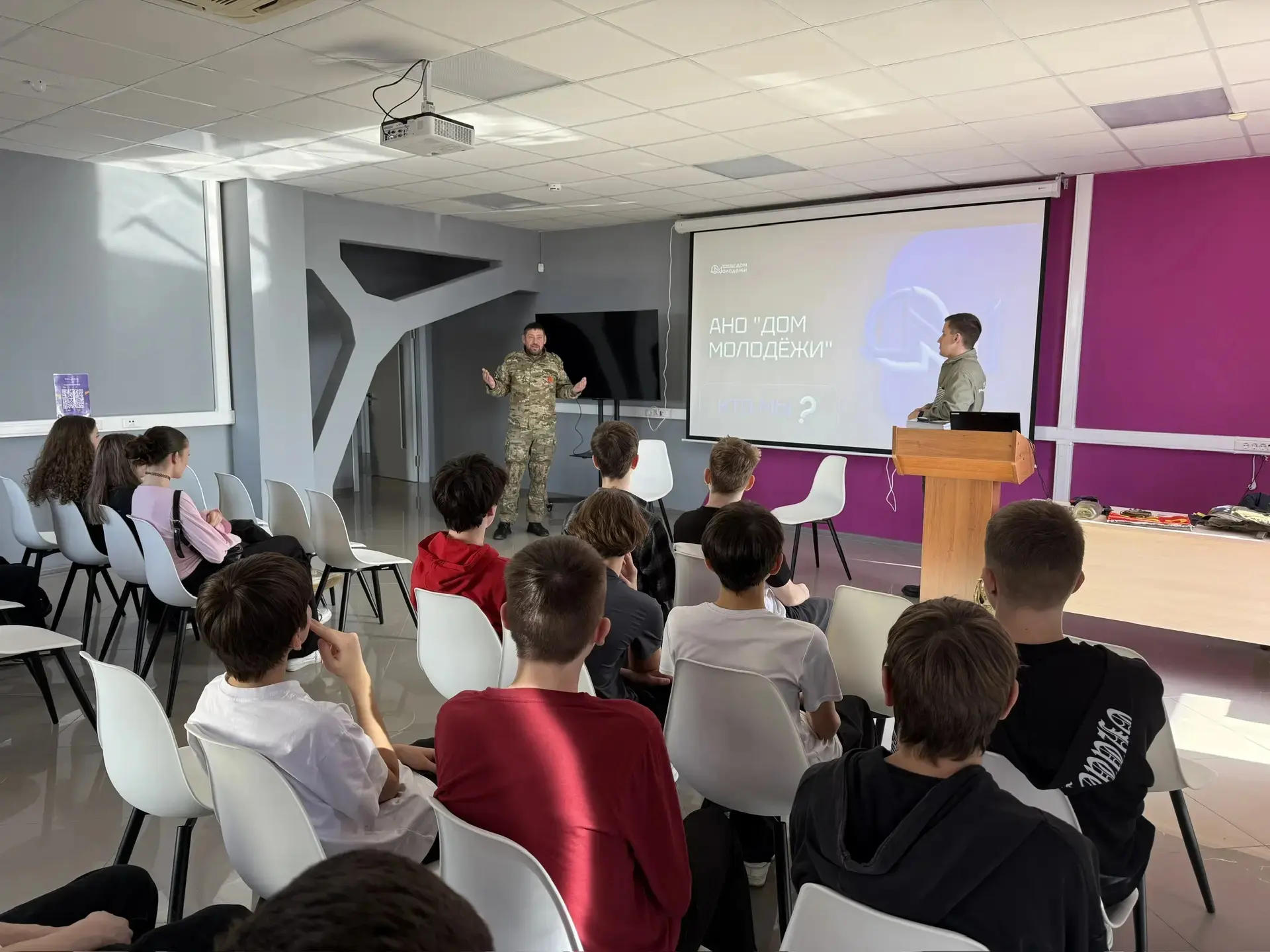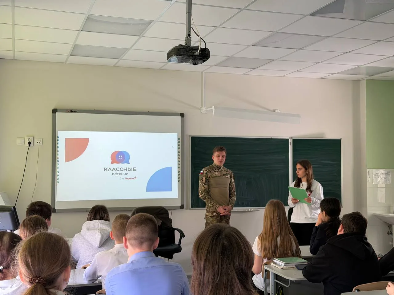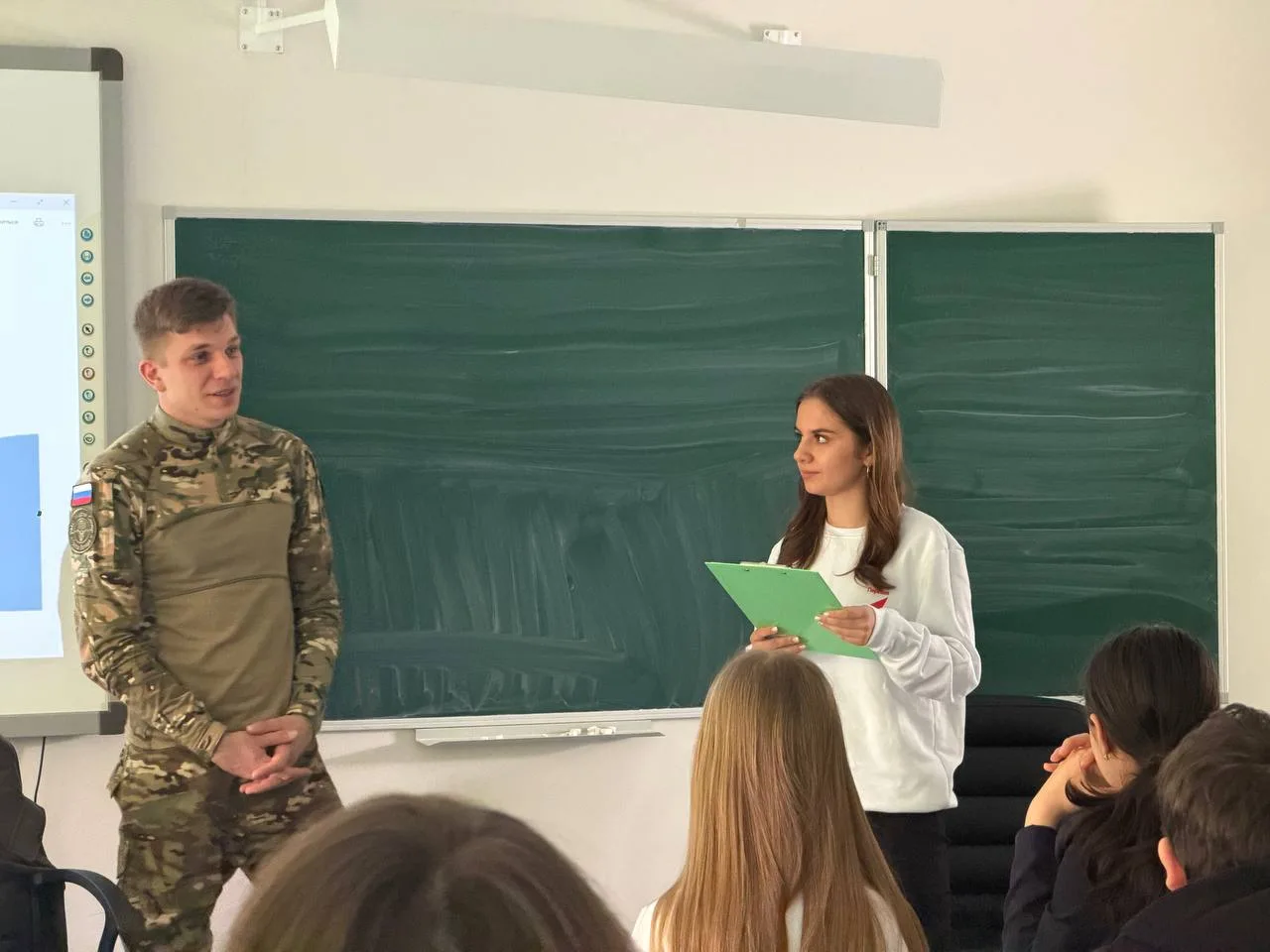 20 февраля учащиеся 8а класса посетили патриотический центр АНО "Дом молодежи", где встретились с Паньковым Павлом Николаевичем, участником СВО, 114 ОМСБр. Павел Николаевич пришёл на встречу не с пустыми руками, познакомил детей с военными принадлежностями (бронежилет, маска, фляжка, прицел и т.д.), рассказал о своём боевом пути, о борьбе с террористическими образованиями в зоне СВО. .
