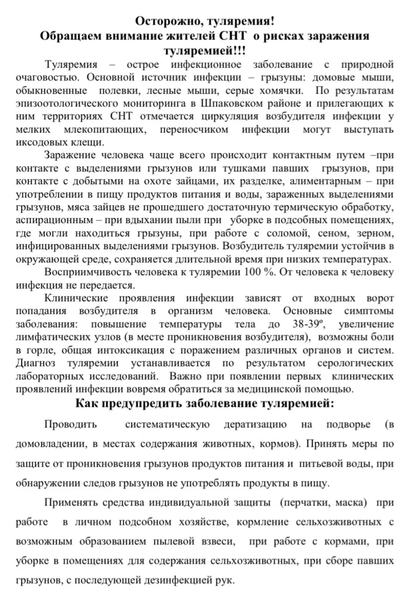 участков о необходимости соблюдения мер профилактики заражения туляре-