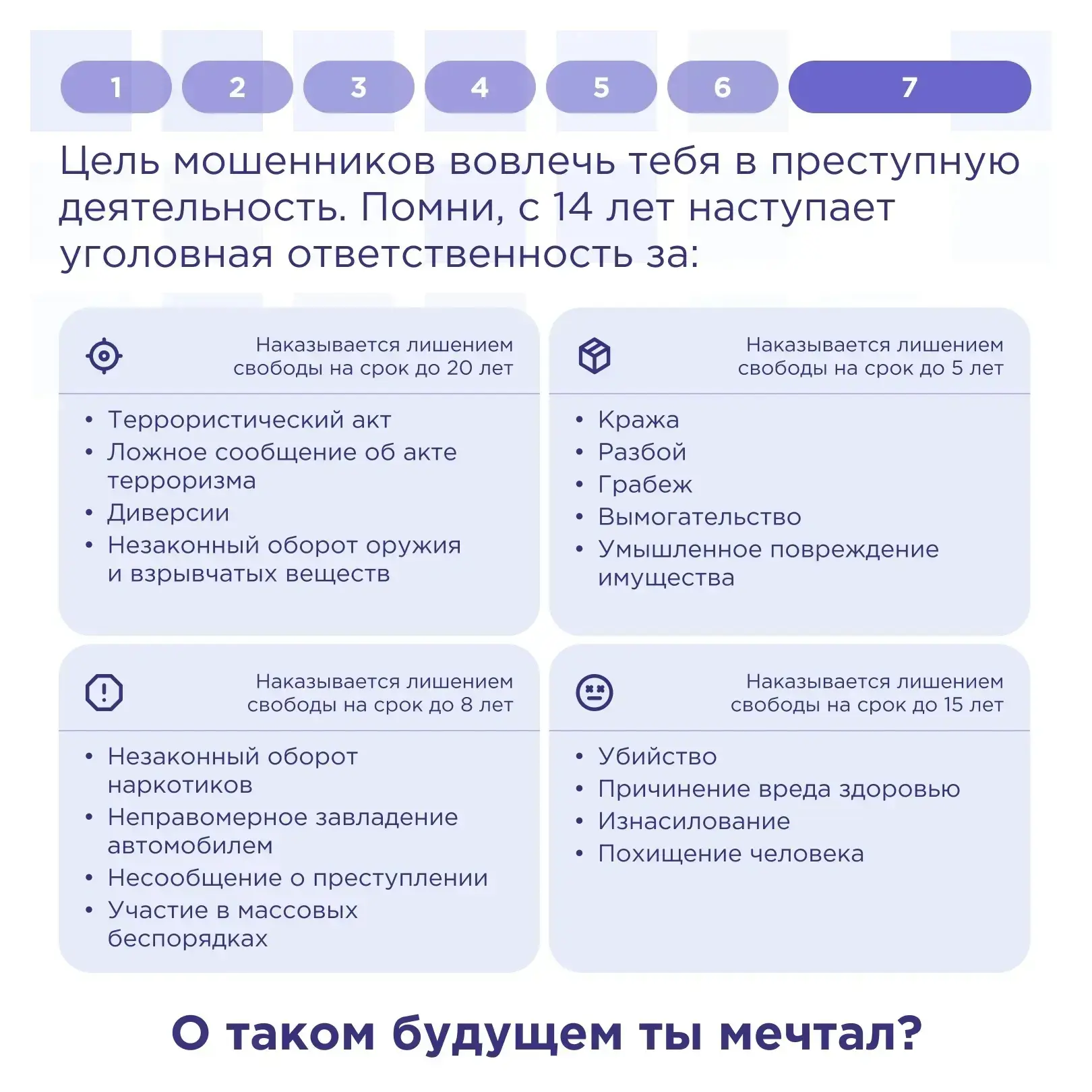🔷 Злоумышленники используют доверчивость, финансовые трудности, иные приемы, чтобы вовлечь человека в преступления, последствия которых могут разрушить жизнь навсегда.