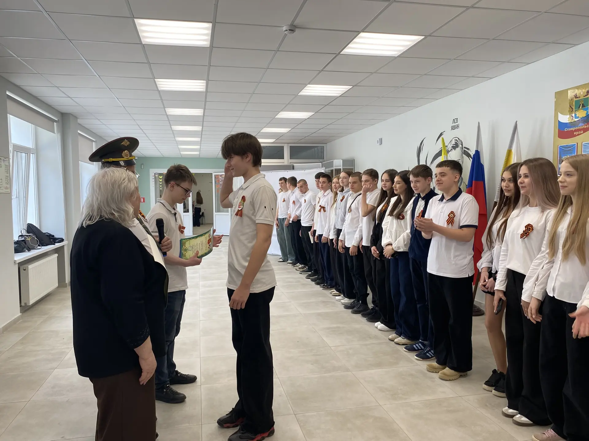 📍Кульминационным моментом линейки стало торжественное награждение юнармейцев, которые несли почетную вахту на Посту №1 у мемориала «Вечная слава». Ребята с честью выполнили свой долг, отдавая уважение павшим героям. Им вручили грамоты за образцовое несение службы и вклад в патриотическое воспитание молодежи.