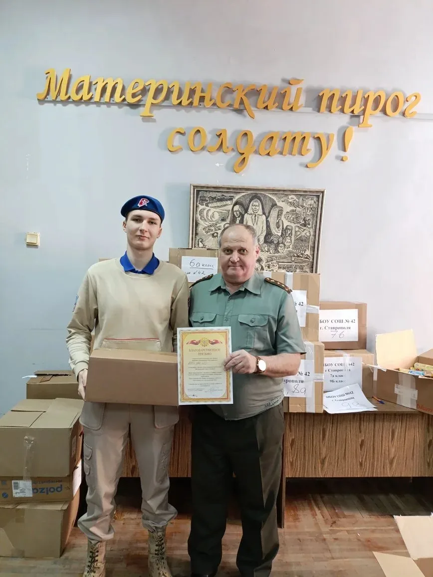 Ученики нашей школы тоже присоединились к акции. Сегодня они передали в Ставропольский городской Совет женщин сладкие угощения и письма для наших защитников Отечества.