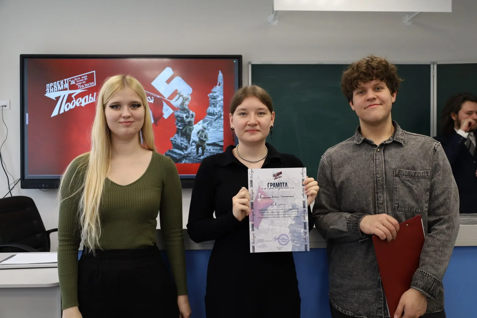 Ребята прослушали лекционный материал об истории" Знамени Победы", проверили свои знания в исторической викторине, собственноручно изготовили и оставили себе ленточки с символикой знамени, а также выиграли памятные призы.