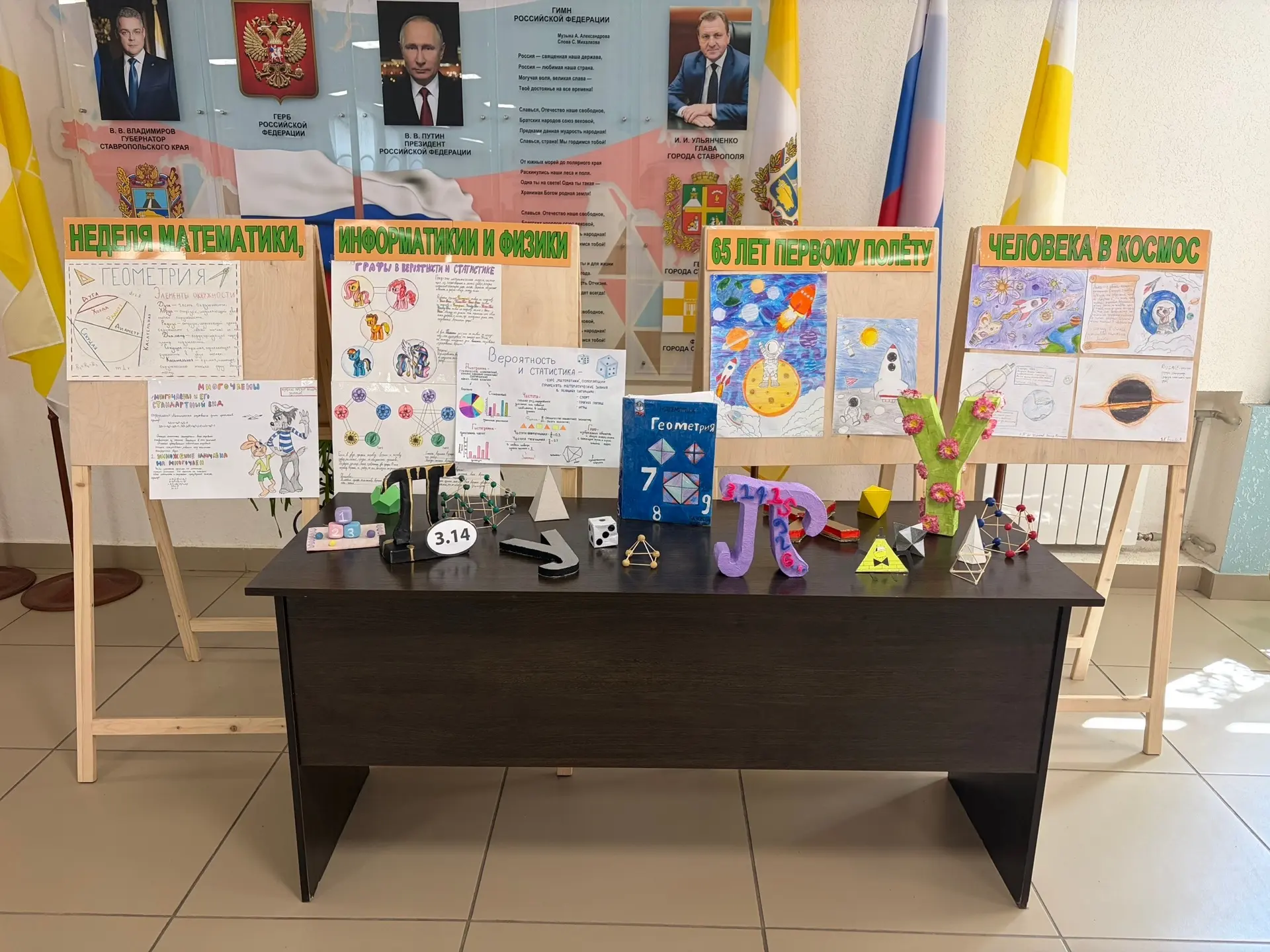 А в холле первого этажа начала работу выставка творческих работ ребят 7 и 8 классов, посвященная точным наукам.