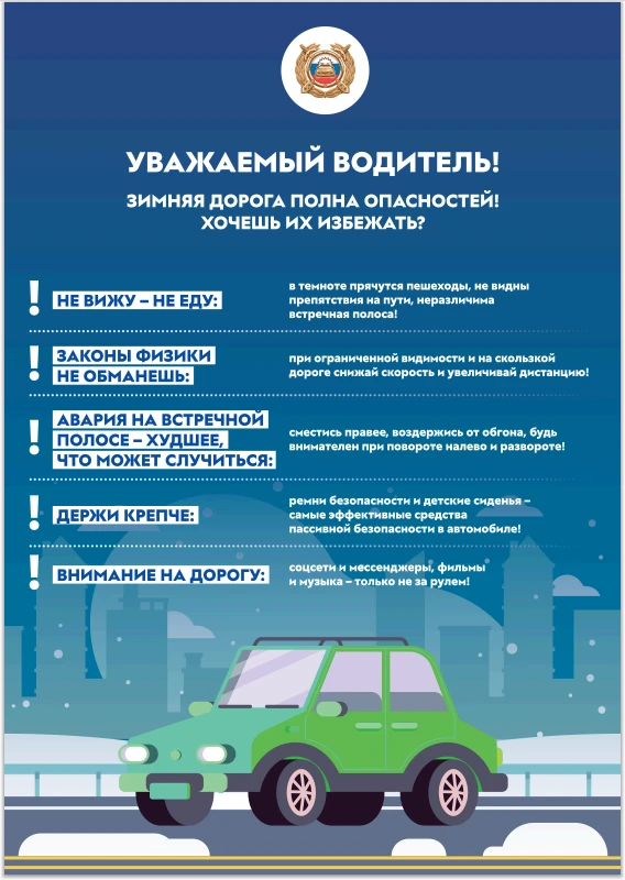 ✍В рамках классных часов педагогами проведены с детьми беседы и инструктажи по безопасности, но без вашей помощи нам не обойтись.🙏❗️Пожалуйста, еще раз объясните, насколько важно соблюдать ПДД в зимнее время. Напомните, что проезжая часть скользкая, тормозной путь автотранспорта увеличивается, поэтому переходить дорогу можно только тогда, когда транспорт полностью остановится.