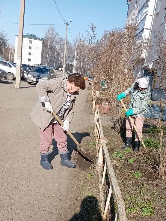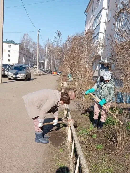 🤝 Активные жители приняли эстафету по уборке своих дворов. Например, дружные соседи МКД № 3 по улице Ленина уже привели в порядок свои палисадники перед входными группами.