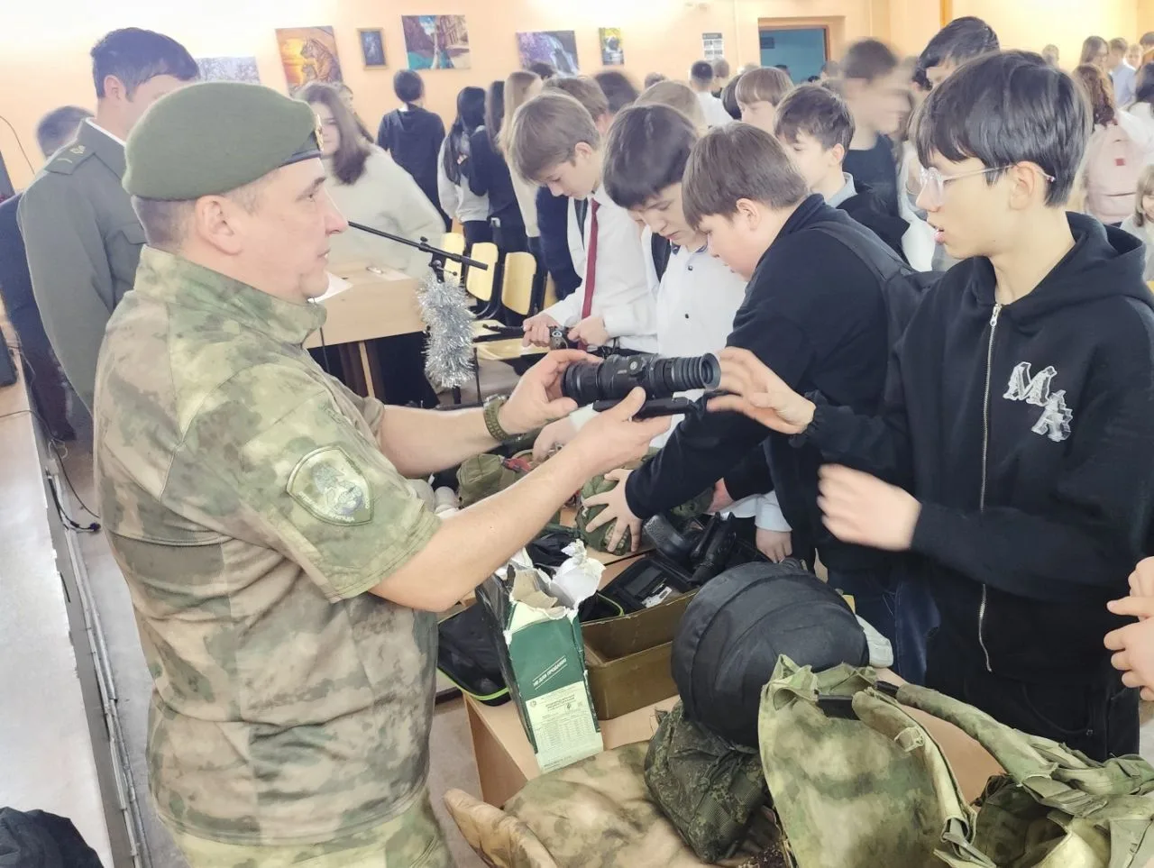 Его рассказ тронул каждого, а демонстрация военной экипировки вызвала неподдельный восторг и множество вопросов у ребят.