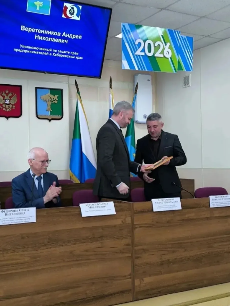 Здравствуйте, коллеги! Меня зовут Андрей Веретенников - я являюсь Уполномоченным по защите прав предпринимателей в Хабаровском крае. Я предлагаю Вам подписаться на мой канал в MAX, что бы первыми получать информацию про защиту предпринимателей, участвовать в наших встречах по взаимодействию бизнеса и власти, преодолению административных и силовых барьеров, разработке законопроектов и условий ведения предпринимательской деятельности. Присоединяйтесь к нашей команде Хабаровского края по развитию экономики в регионе ! ☎Контакты Уполномоченного: