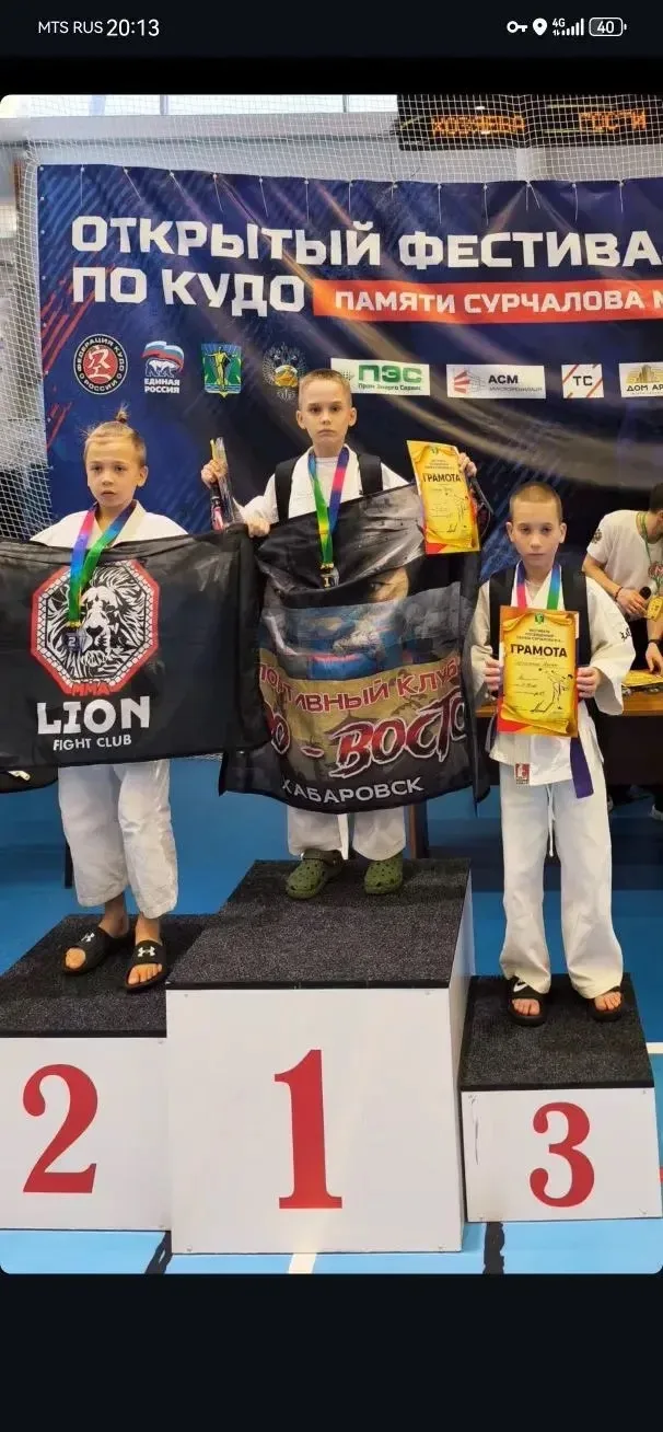 21 февраля в городе Комсомольске-на-Амуре проходил открытый фестиваль по Кудо памяти Сурчалова М.А., где участвовали спортсмены из Владивостока, Амурска, ЕАО, Комсомольска, Солнечного, Березового, Хабаровска. Ученик 3 Б класса, Збрицкий Прохор в составе команды Клуба "Восток" занял 1 место в своей возрастной категории 9-10 лет. Поздравляем и гордимся🎉👏🏻