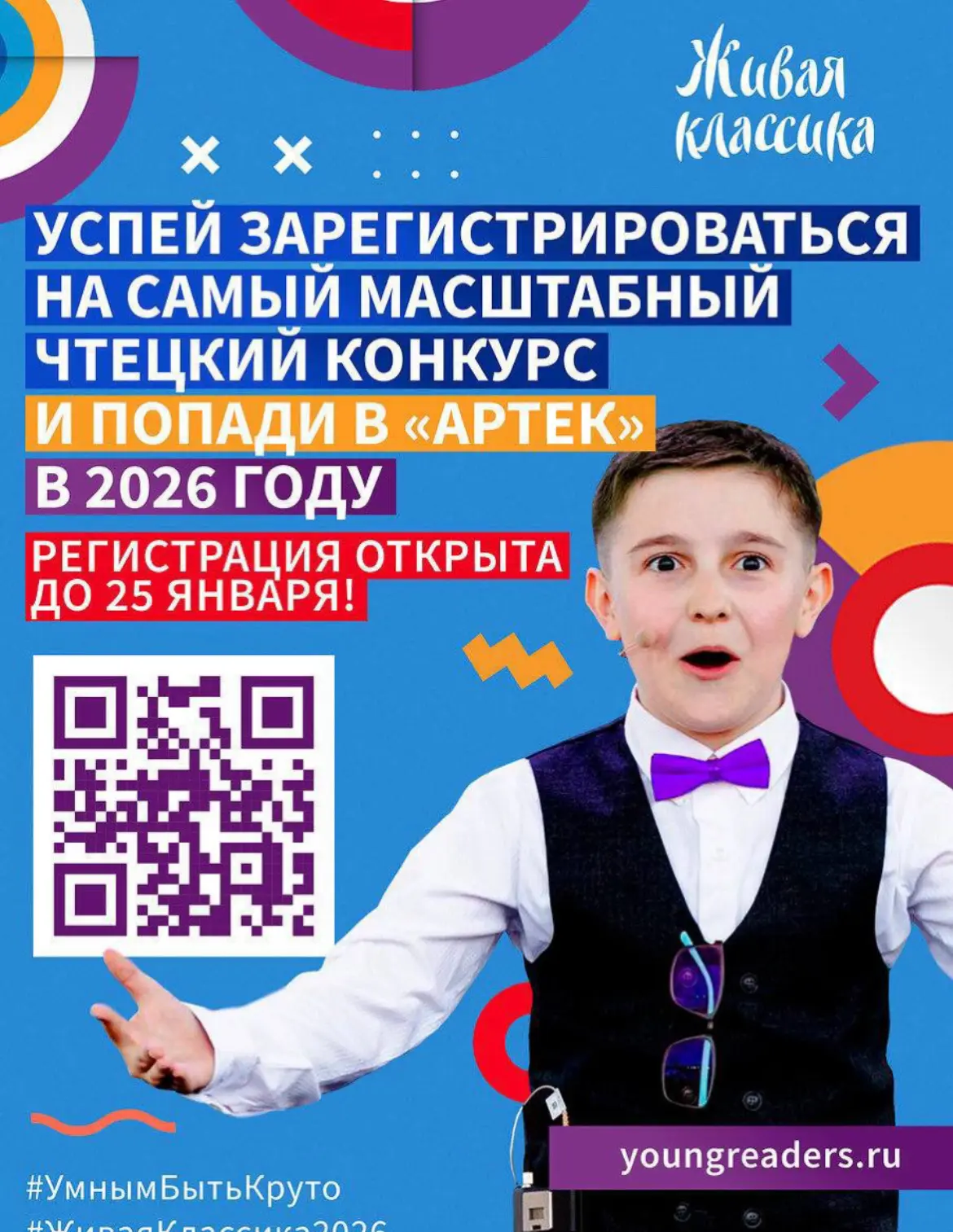 Регистрация на Международный конкурс чтецов «Живая классика» заканчивается 25 ЯНВАРЯ!
