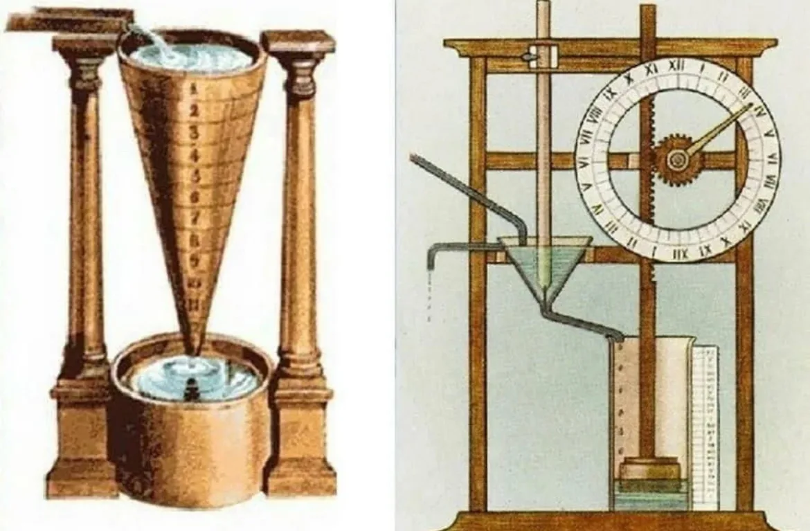 Эти водяные часы были на службе у древних людей на протяжении тысячелетий и постепенно усовершенствовались Ктесибием (греческий изобретатель и математик, 285–222 до н.э. ). Ее механизм усложнялся, и издавался звук, когда вода доходила до нужного уровня.
