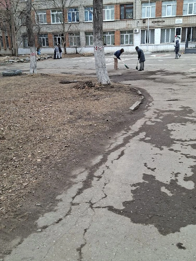 После долгой и снежной зимы лицейский двор наконец-то показал, как сильно он соскучился по заботливым рукам. Как только сошёл последний снег, обнажилась не только земля с перезимовавшей под снегом зеленой травой, но и последствия осенне-зимнего периода: немалый объём бытового мусора.