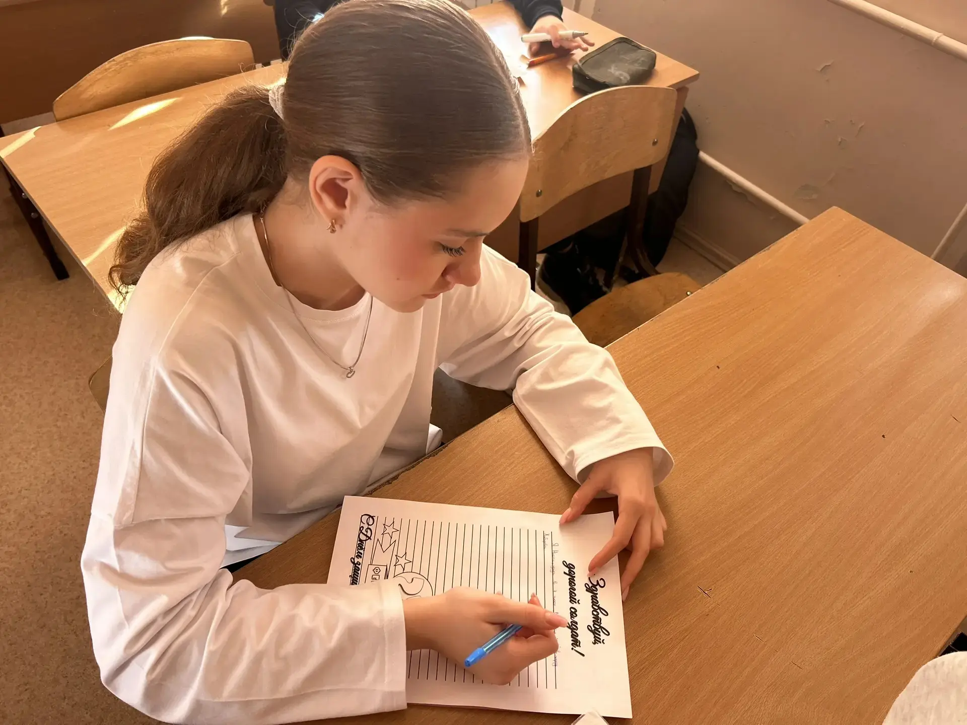 Сегодня учащиеся разных классов нашей школы присоединились к важной акции — написали письма героям, которые защищают нашу страну вдали от дома. В этих письмах ребята выражали слова благодарности, поддержки и теплые пожелания.