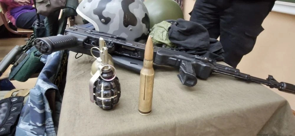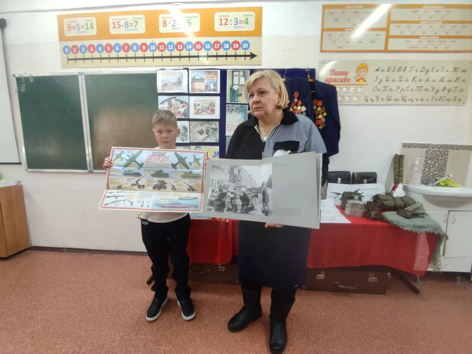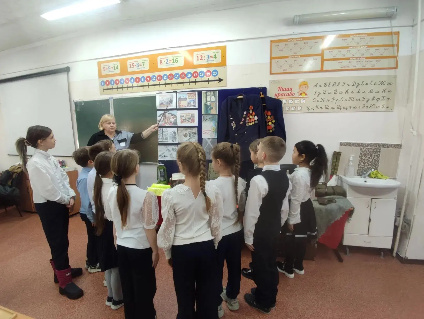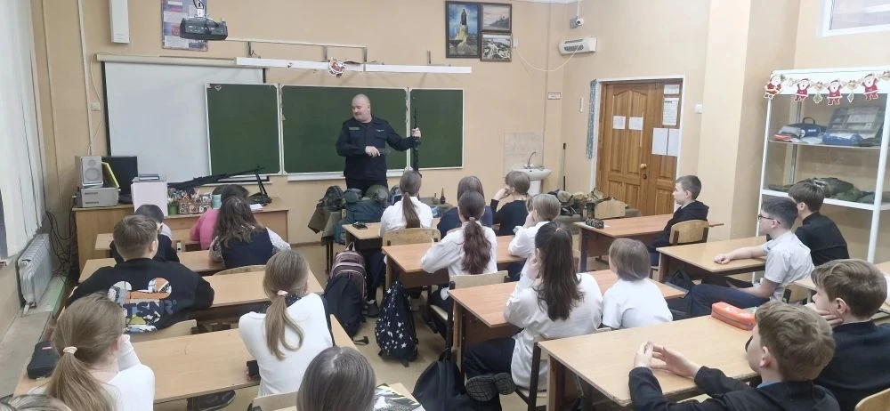 Занятия провел Болтов Валерий Александрович, член правления Союза ветеранов государственной безопасности по ДВ региону, председатель комиссии по работе с молодежью Совета ветеранов железнодорожного района города Хабаровска, член наблюдательного совета школы. Целью занятий было ознакомление с историей праздника, в ходе которых ребятам было продемонстрировано вооружение солдатов, знакомство с героями и защитниками Родины.
