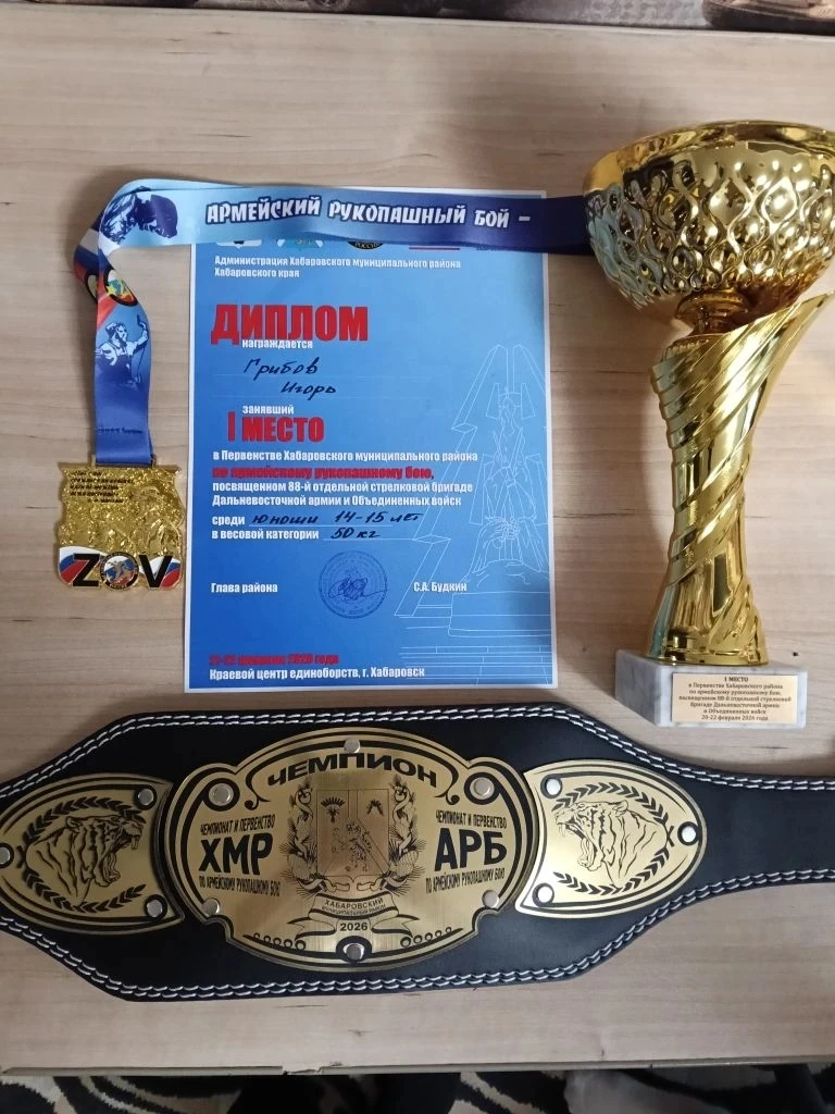 1 место в Первенстве Хабаровского муниципального района по армейскому рукопашному бою, посвящённый 88-й отдельной стрелковой бригаде Дальневосточной армии и объединенных войск.