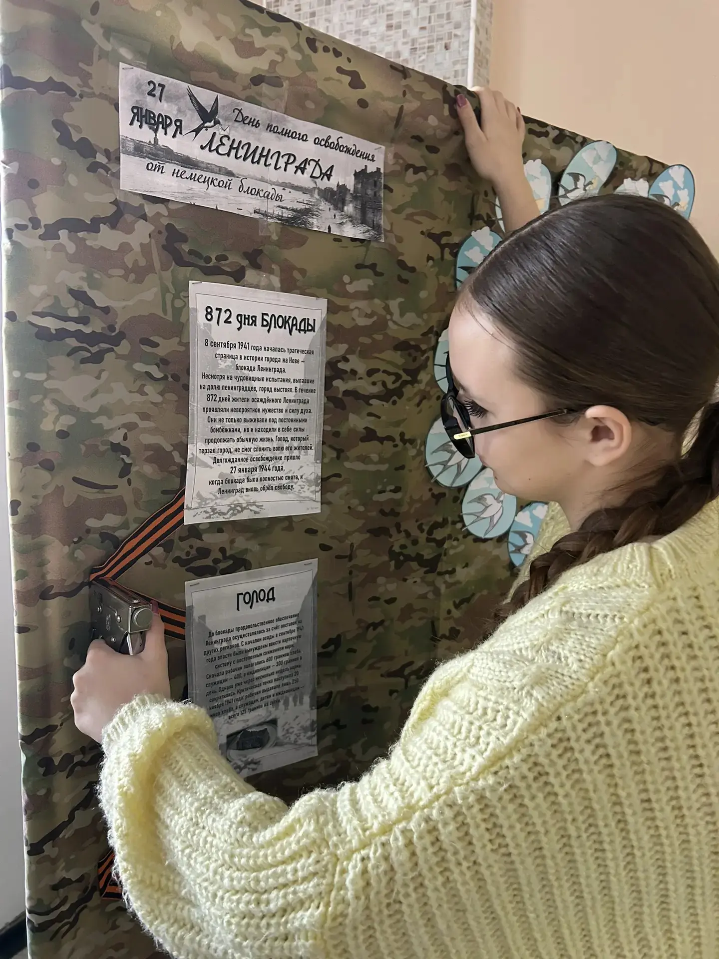 Активисты Движения Первых совместно с младшими школьниками оформили информационный стенд о Блокадном Ленинграде.