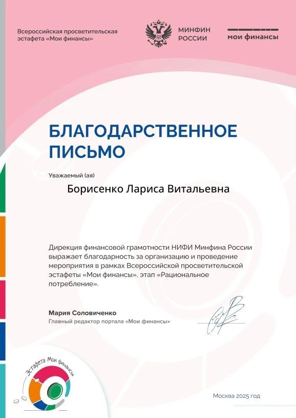 В рамках тематического этапа Эстафеты «Мои финансы 2025 года «Рациональное потребление» учащиеся познакомились с тем как сделать наше потребление более рациональным. Узнали как Вести бюджет и пересмотреть необязательные расходы; как поставить цель и разработать финансовый план; как покупать только то, что нужно; как покупать качественные вещи, которые прослужат дольше, а не дешёвые, которым быстро понадобится замена и др.