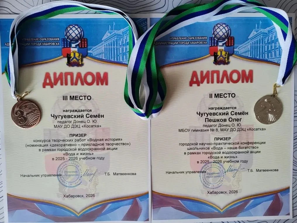 Семён Чугуевский, ученик 7 Г класса, стал участником городской акции «Вода и жизнь» и успешно выступил сразу в нескольких мероприятиях. 🎨 Он стал призёром конкурса творческих работ «Водная история», а также призером городской научно-практической конференции «Вода — наше богатство», доказав, что наука и забота о планете идут рука об руку.