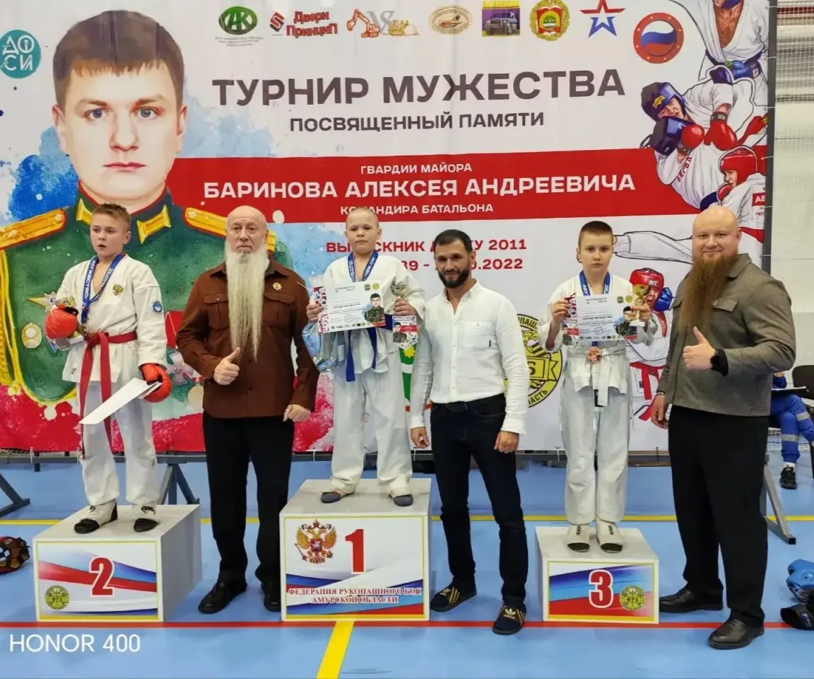 В Благовещенске прошёл «Турнир мужества» по рукопашному бою, где Нечаев Денис (5 В класс) занял 1 место в категории 10–11 лет до 35 кг и 2 место в категории 12–13 лет! Щербаков Вячеслав (6 Г класс) завоевал 3 место в категории 12-13 лет! 🥇🥈🥉