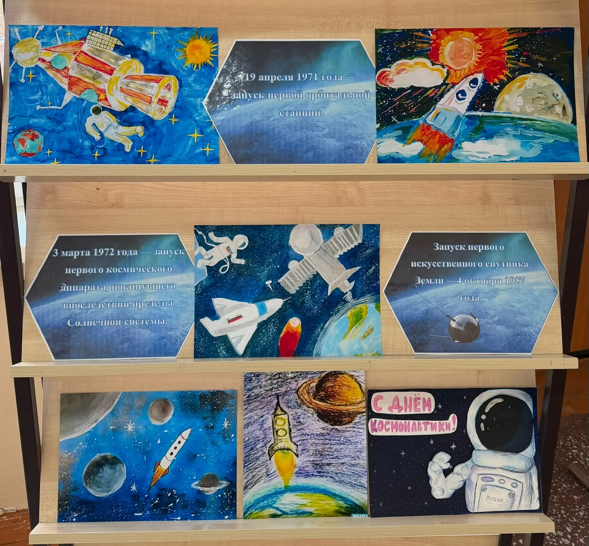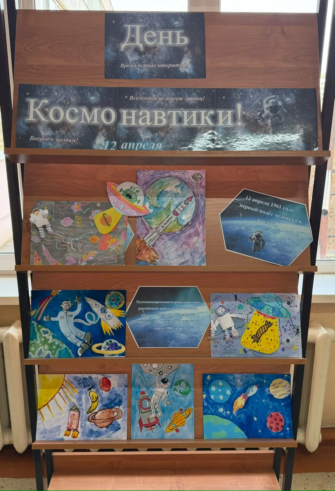 🚀 На первом этаже гимназии проходит выставка, посвящённая Дню космонавтики, которая предлагает окунуться в атмосферу космических открытий и узнать больше о великих достижениях человечества!