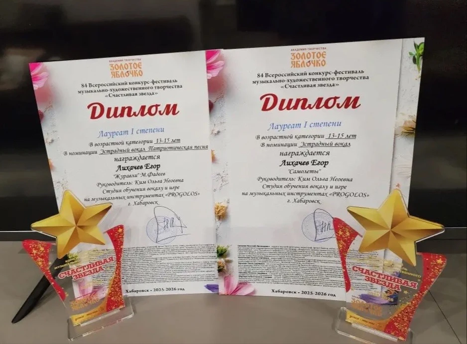 В Хабаровске состоялся 84-й Всероссийский конкурс-фестиваль музыкально-художественного творчества «Счастливая звезда». Наш ученик Егор Лихачев стал лауреатом первой степени, исполнив сразу две композиции! 🎤
