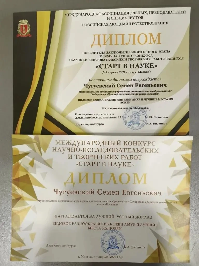 Но на этом его победы не закончились! 🥇 Семён стал победителем заключительного очного этапа международного конкурса научно-исследовательских и творческих работ учащихся «Старт в науке».👏🏻