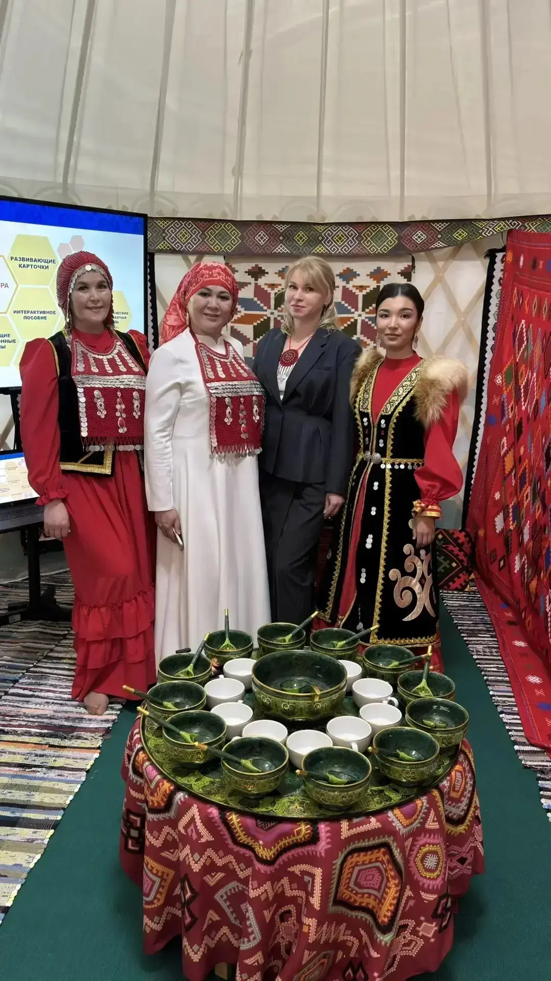 ✨ В завершение практических занятий был организован круглый стол с участием Давлетбаевой Раисы Губайдулловны, доктора педагогических наук и главного научного сотрудника Международного центра продвижения русского языка и литературы им. М. Карима, а также лучших учителей родных языков РБ — победителей и призеров профессиональных конкурсов. Мы коллегиально обсудили вопросы полилингвального образования и дальнейшие перспективы, плавно перейдя ко второй части программы — реализации поликультурного образования в нашей гимназии. На этно-встрече в юрте гости и педагоги гимназии провели мастер-классы «Язык орнамента: секреты национального костюма».