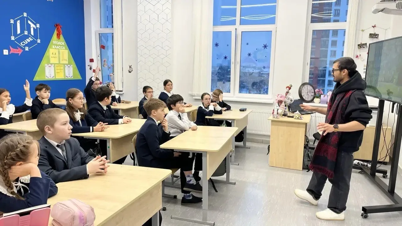 🔥Сегодня у ребят 8 лингвистического класса прошел увлекательный урок с носителем английского языка Тимоти. Атмосфера в классе была наполнена ожиданием и интересом, ведь ученики имели уникальную возможность пообщаться с носителем языка и задать ему вопросы о будущем.