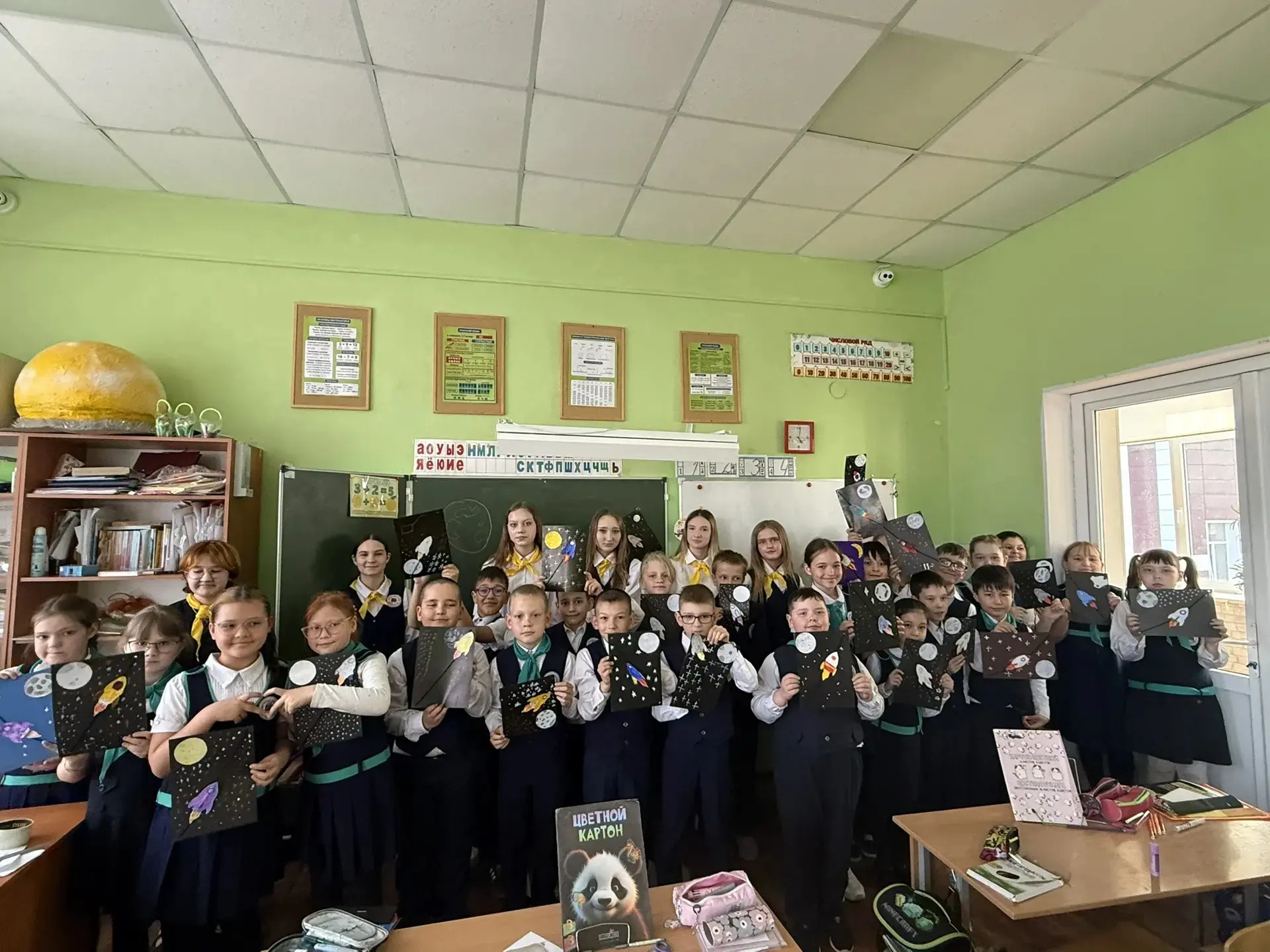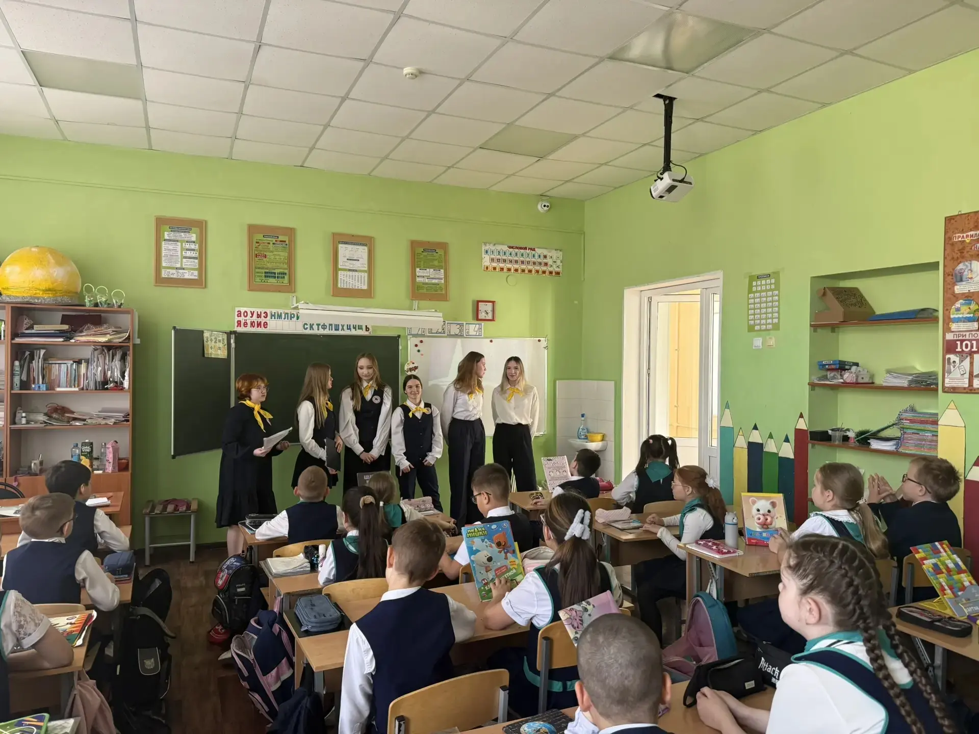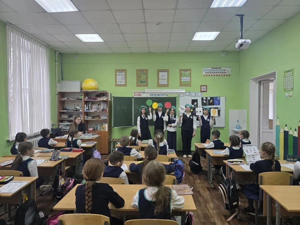 советник директора по воспитанию и старшиелассники провели увлекательный тематический классный час для учеников начальной школы☄️